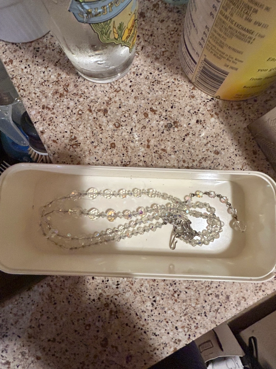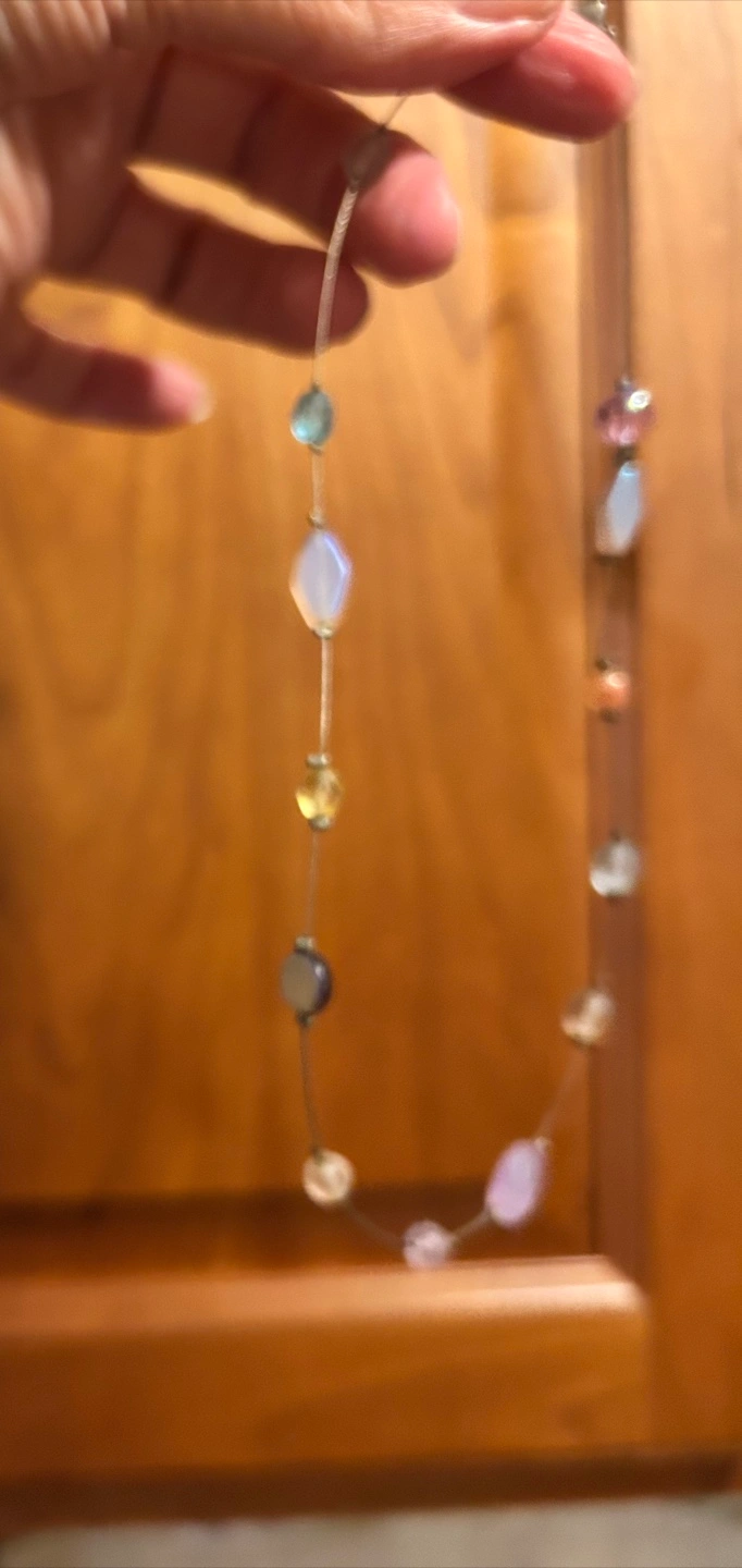This is a beaded crystal necklace. It is very pretty and in good condition! Another necklace also thrown in as a freebie