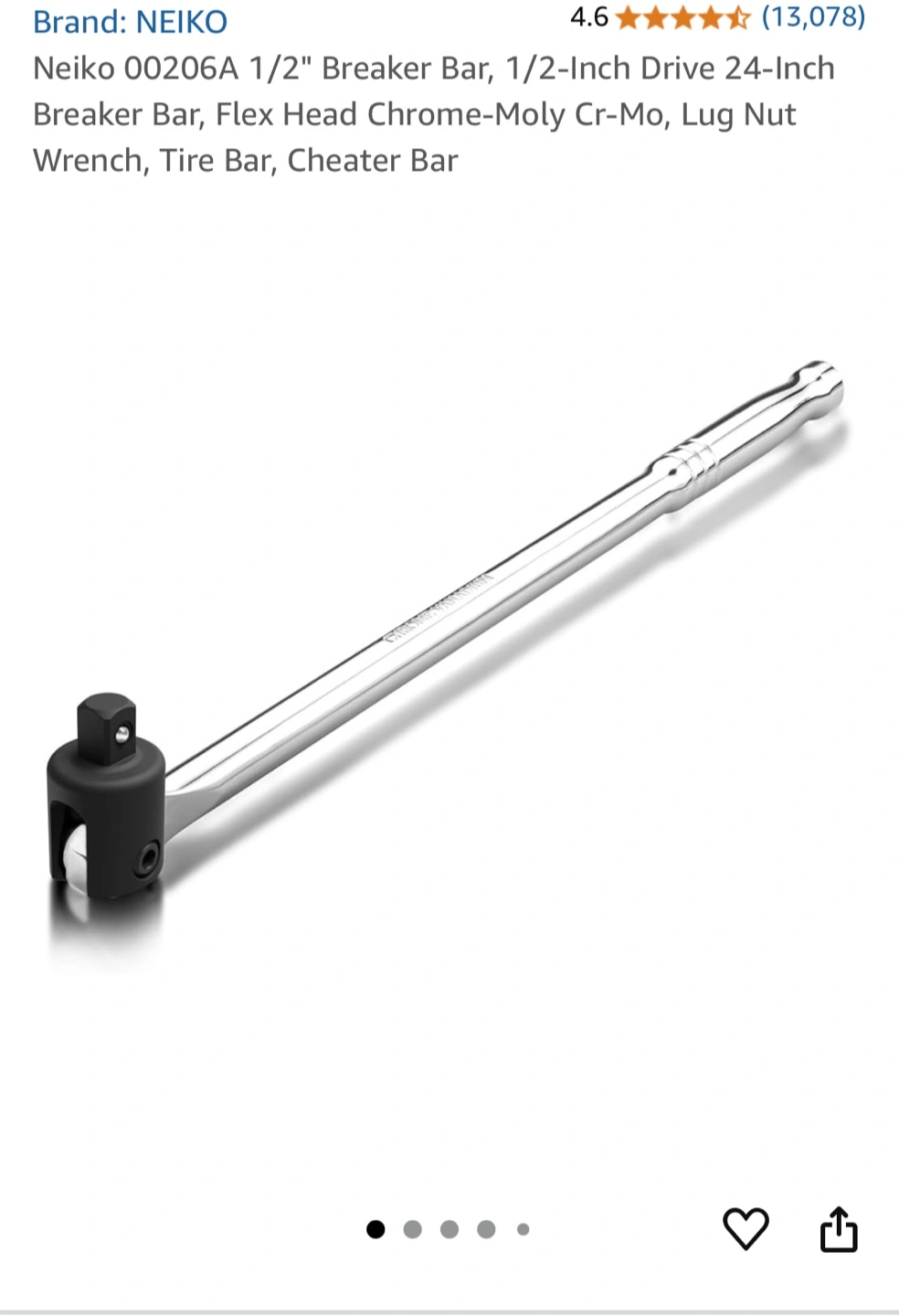 Selling a NEIKO breaker bar in great condition! It's a 1/2-inch drive with a 24-inch length. Perfect for lug nuts, tire bars, and more. The box is included!