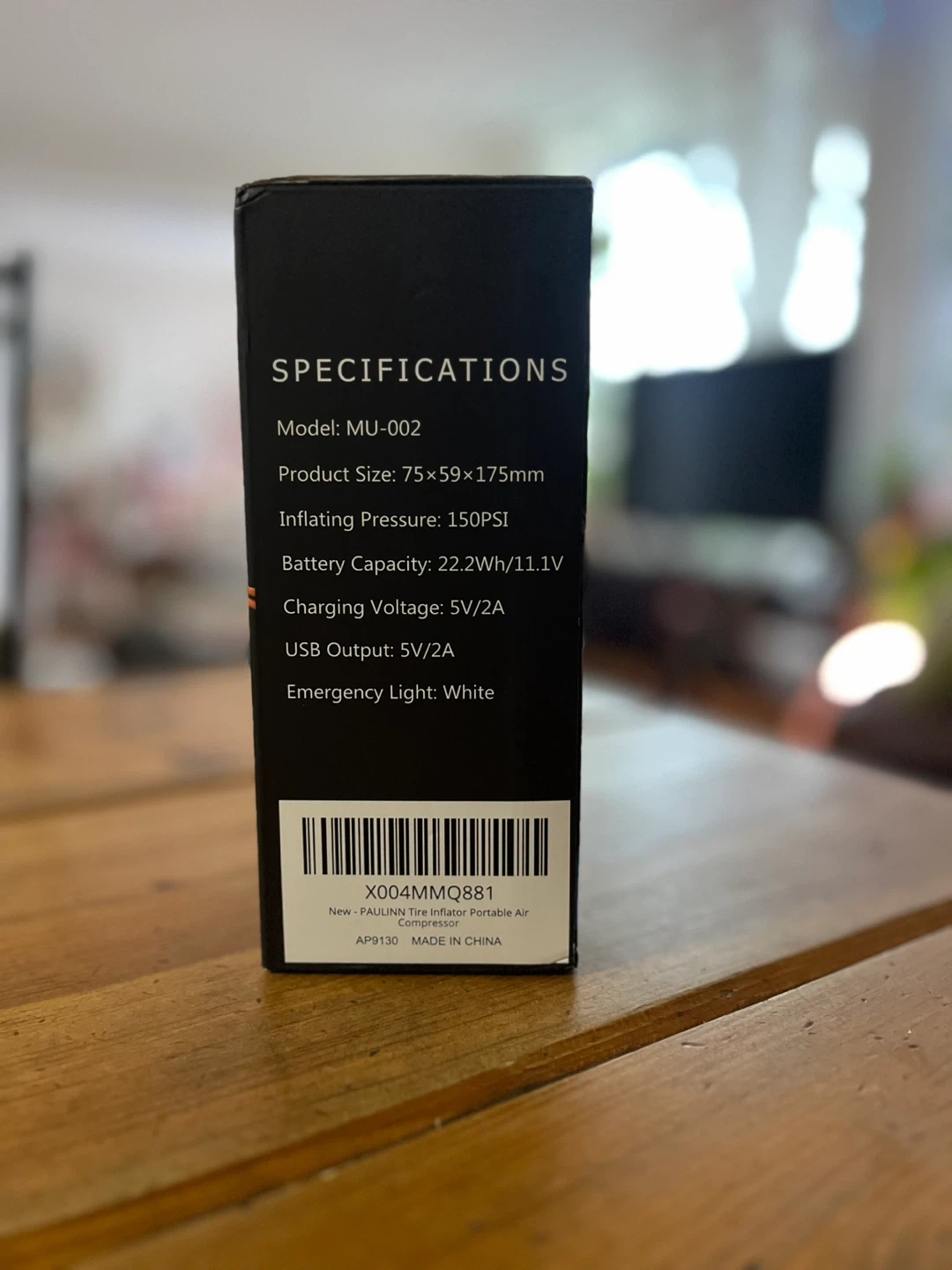 This unit is powered by a 6000mAh rechargeable battery and delivers strong airflow for fast inflation, up to 150 PSI.