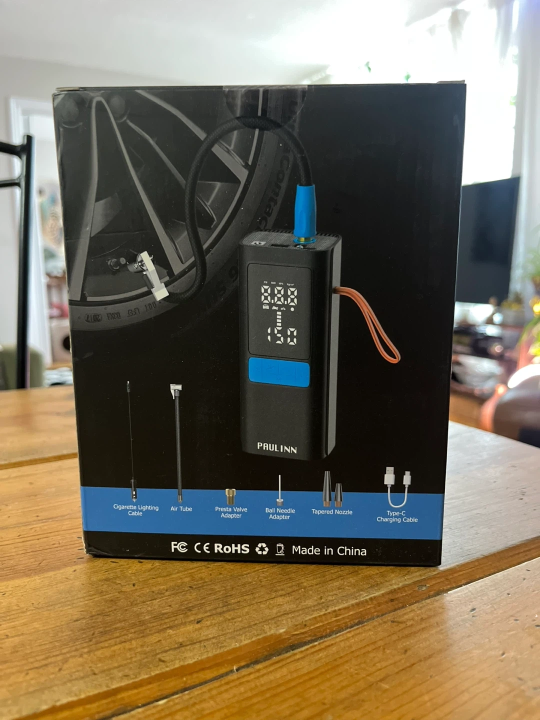 Selling a brand new, never used, portable cordless tire inflator, designed for quick and easy tire inflation at home or on the go.