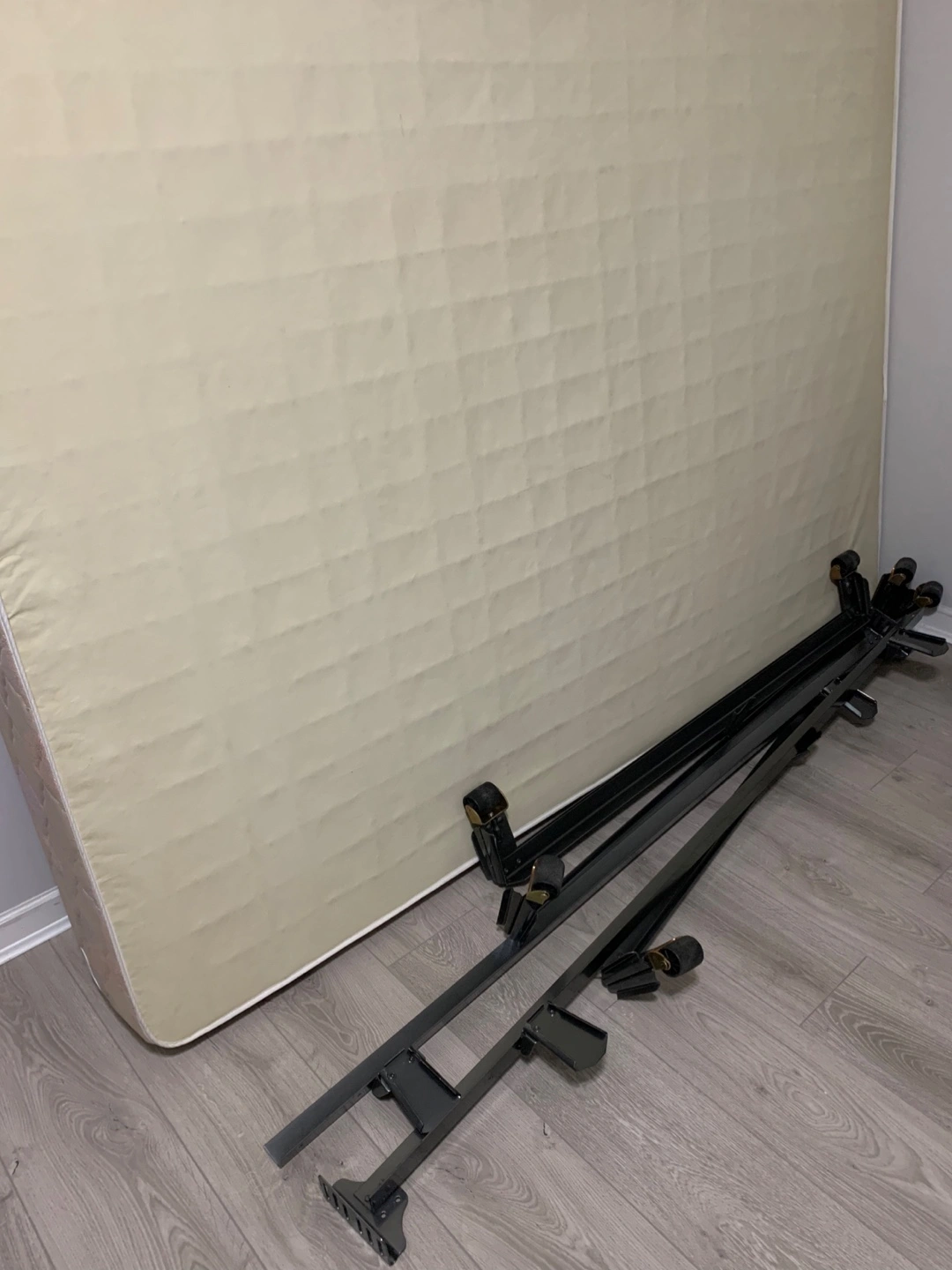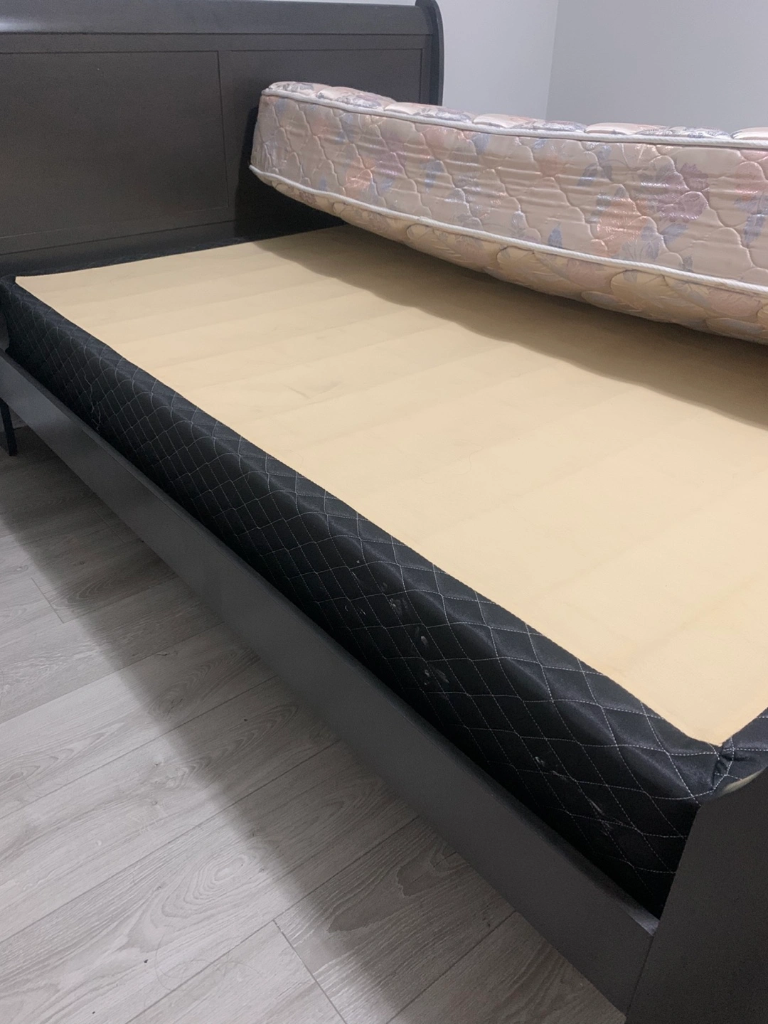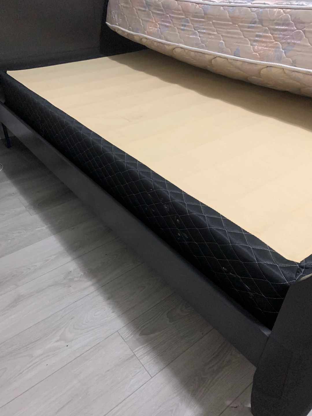 I ended up having two box springs so I am selling either of the two. The first one is black (what I am currently using — bedframe and mattress not included) The second one is pinkish/printed/rose gold (suitable for female) BOTH ARE QUEEN SIZE. The box springs come with a steel base (see last photo) I AM ONLY SELLING ONE OF THE TWO, THE BUYER CAN CHOOSE WHICH ONE HE/SHE WANTS TO GET. For pick up only. Both are in excellent working condition.