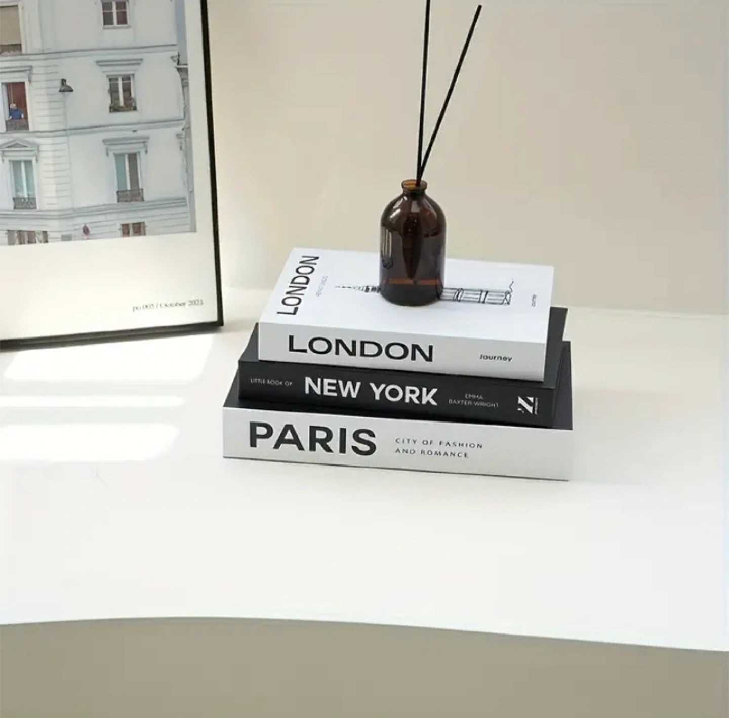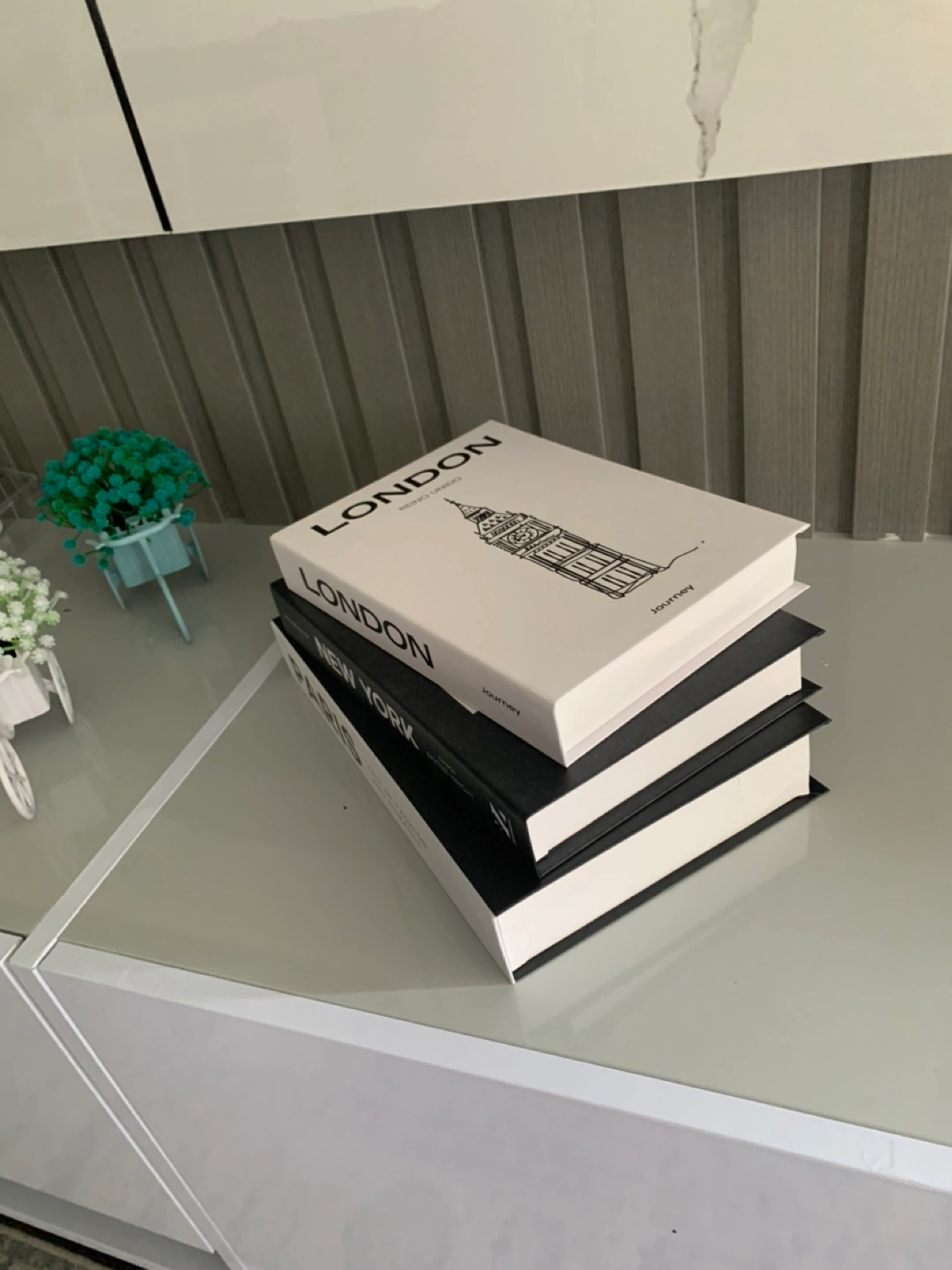 Selling a set of decorative books featuring London, New York, and Paris. These books are perfect for adding a touch of style to your home decor. Decorative fake books set of 3