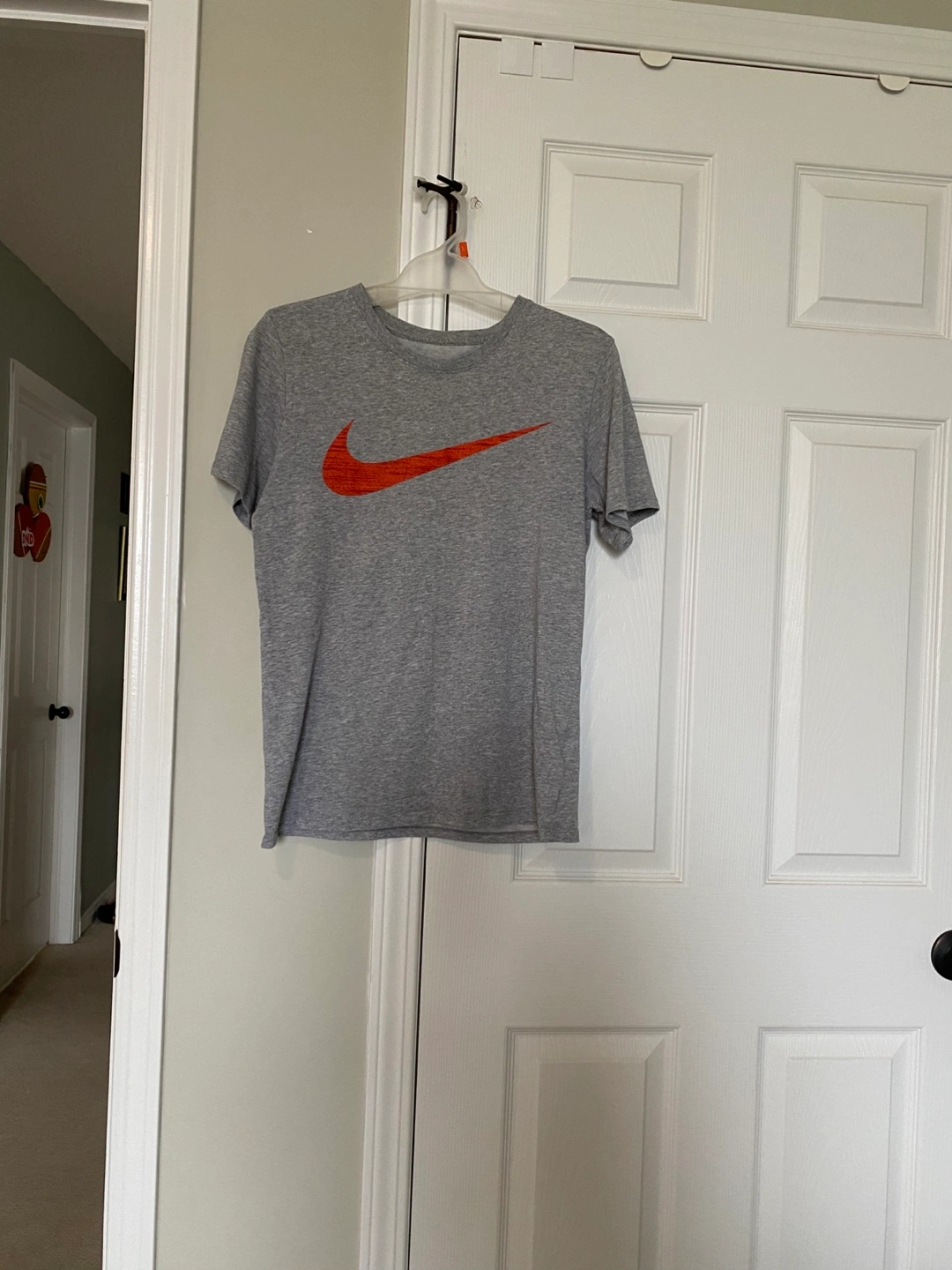 Selling a grey Nike men’s T-shirt in size small. The shirt features the iconic Nike swoosh logo. It's made of 60% cotton and 40% polyester and is in great condition!