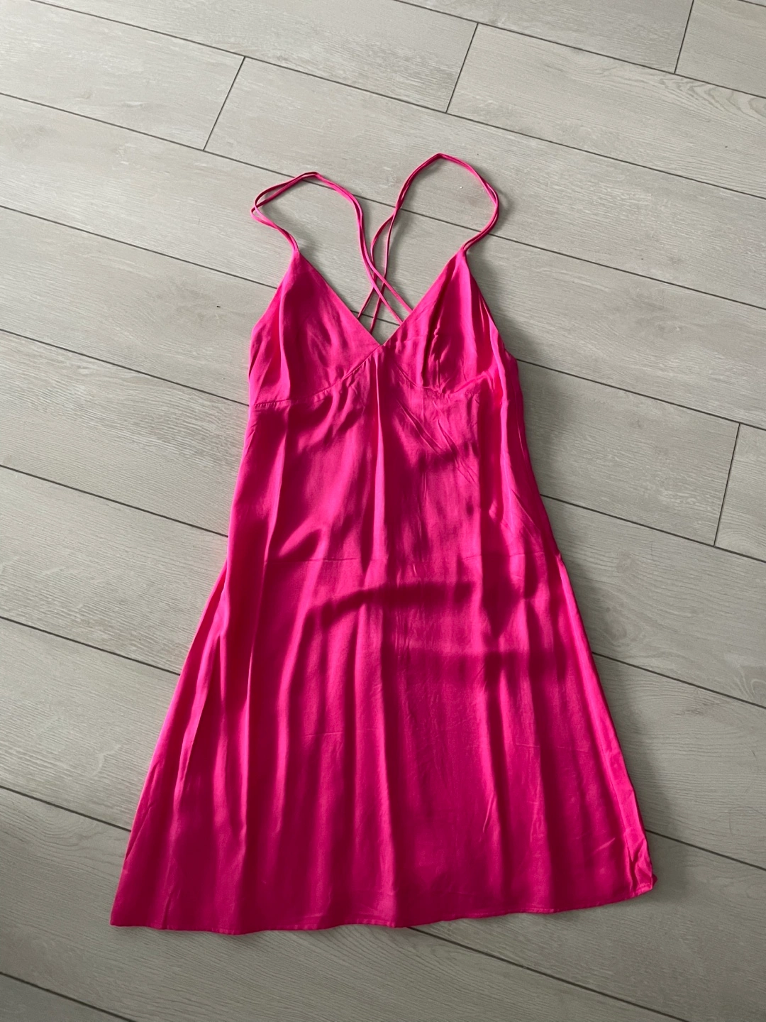 Two dresses for sale! One is a black halter-style dress and the other is a pink dress with criss-cross straps in the back. Both are new, never worn.