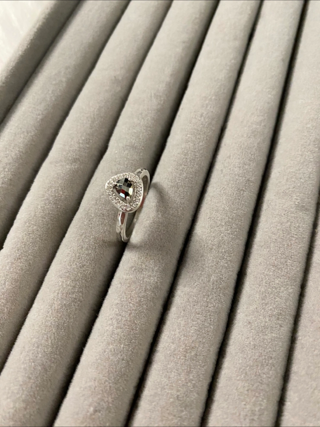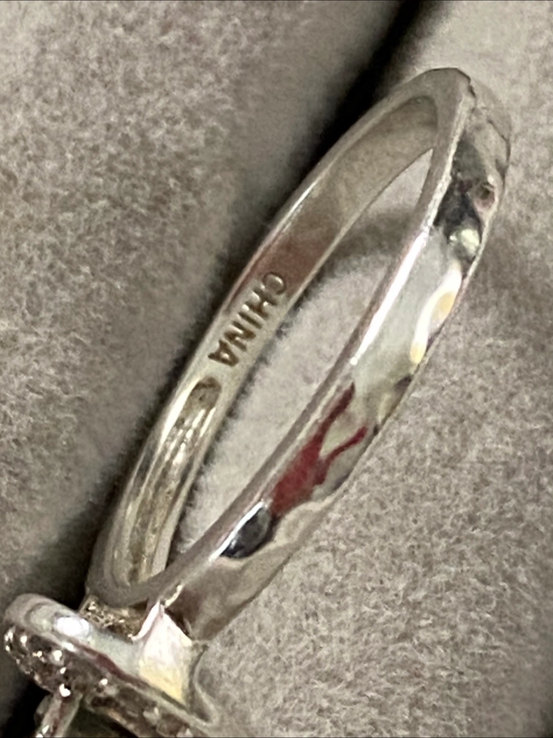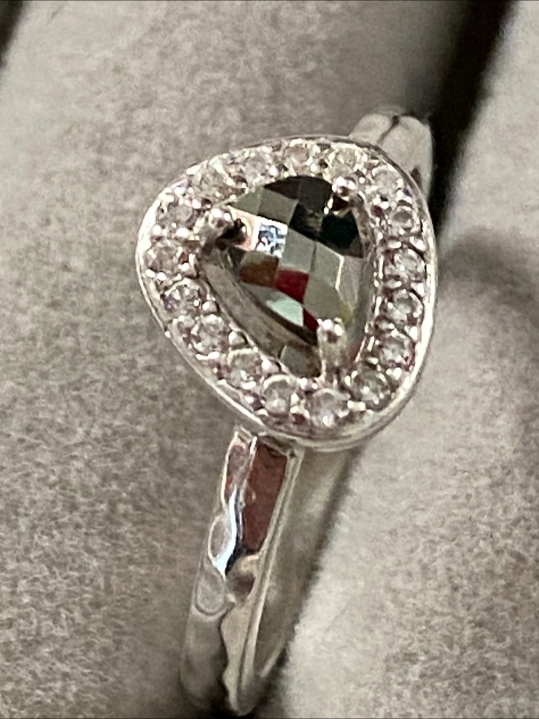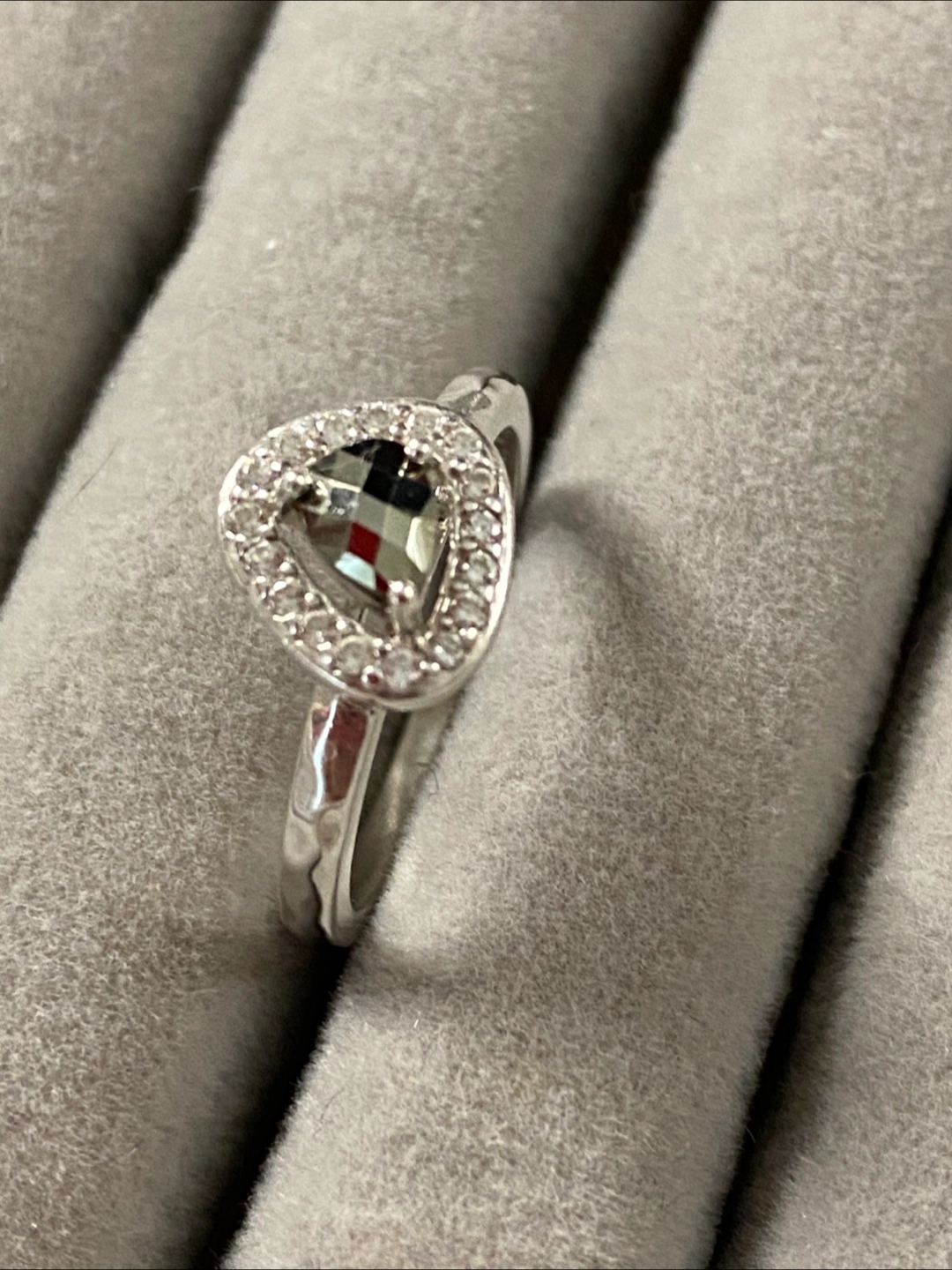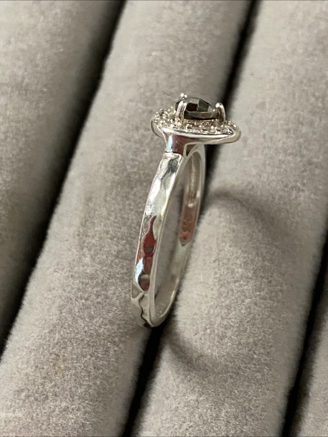 Selling a sterling silver ring marked with '925'. The ring also has silpada logo engraved on the inside. It features a halo design around a dark stone.