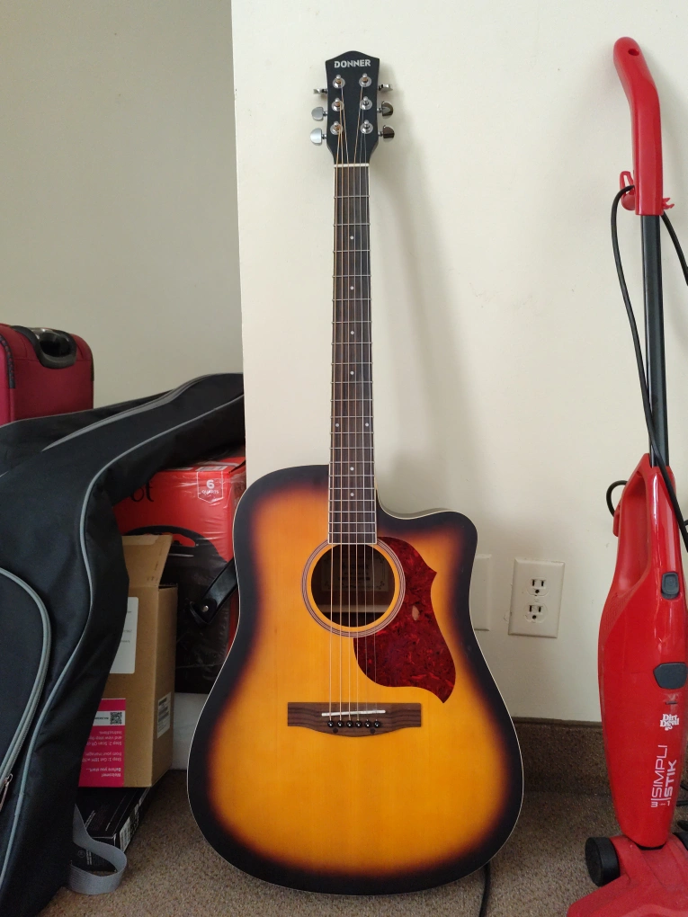 Selling a Donner acoustic guitar. It's in great shape and ready for a new home. Comes with a case for easy transport and storage. Also equipped with a new set of strings.