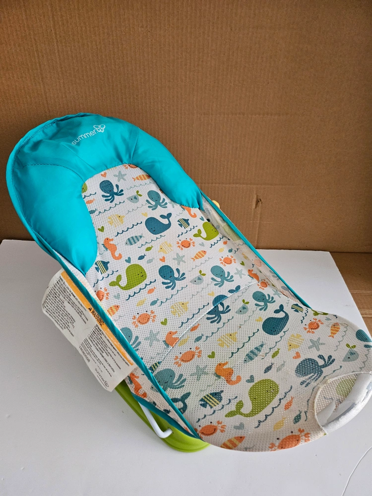 Selling a Summer Infant baby bather in great condition! It features a cute ocean-themed design with whales, octopuses, and other sea creatures. Perfect for making bath time easier and more comfortable for your little one