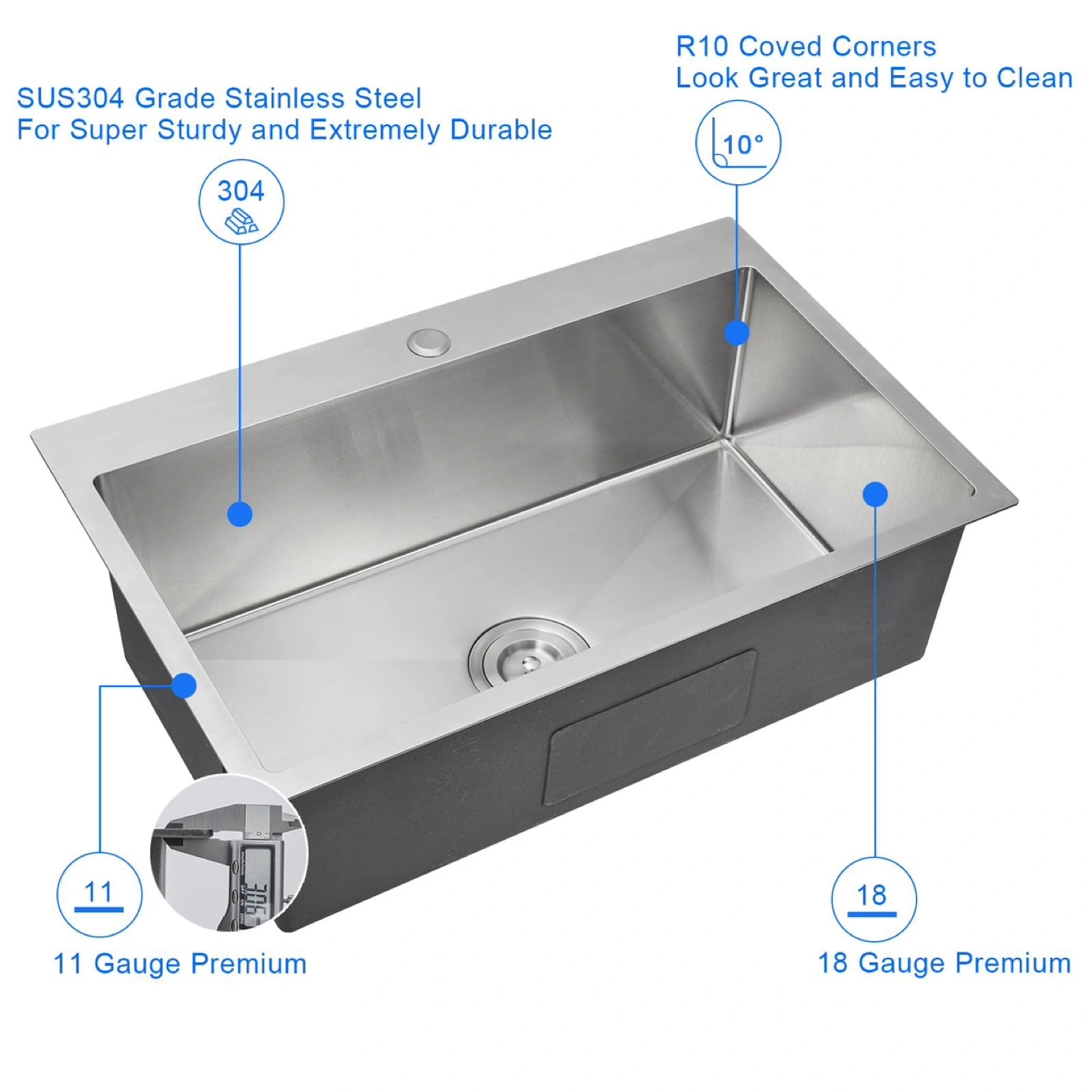 New MENATT 28" Drop-in Kitchen Sink Stainless