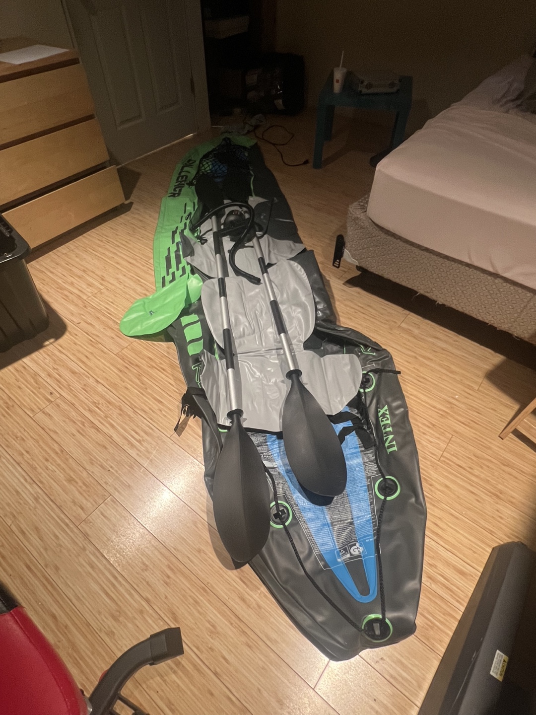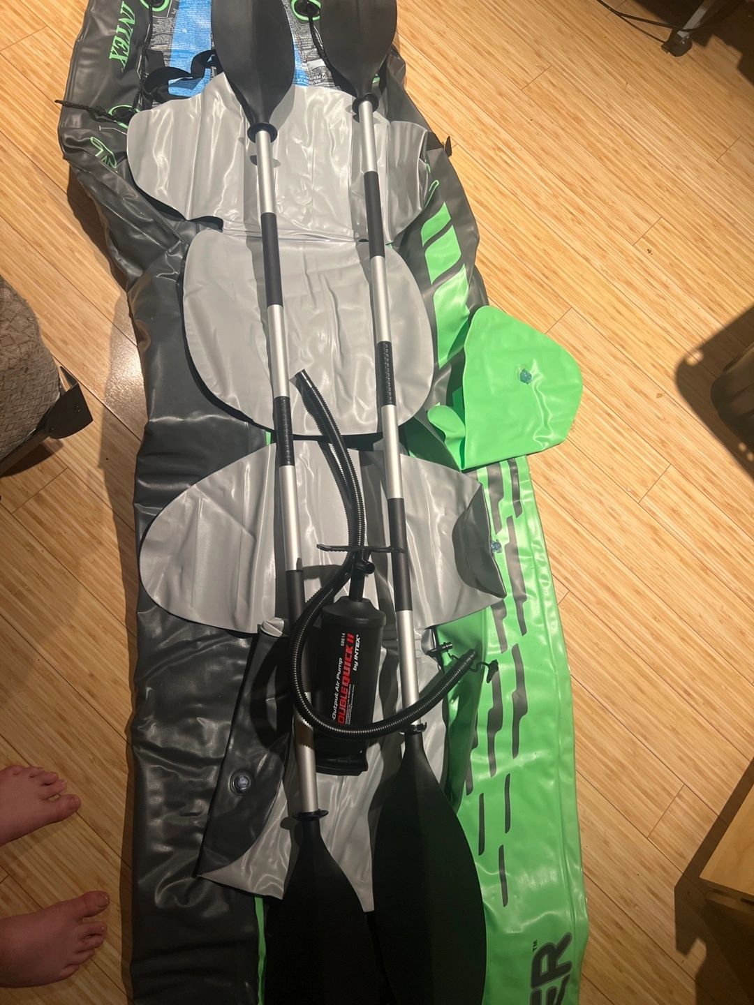 Selling a inflatable kayak it’s only been used once and is in brand new condition it come with two paddles, two inflatable seats and a air pump perfect for a first time kayak and perfect for families roughly 10 feet when inflated 400 pound weight limit