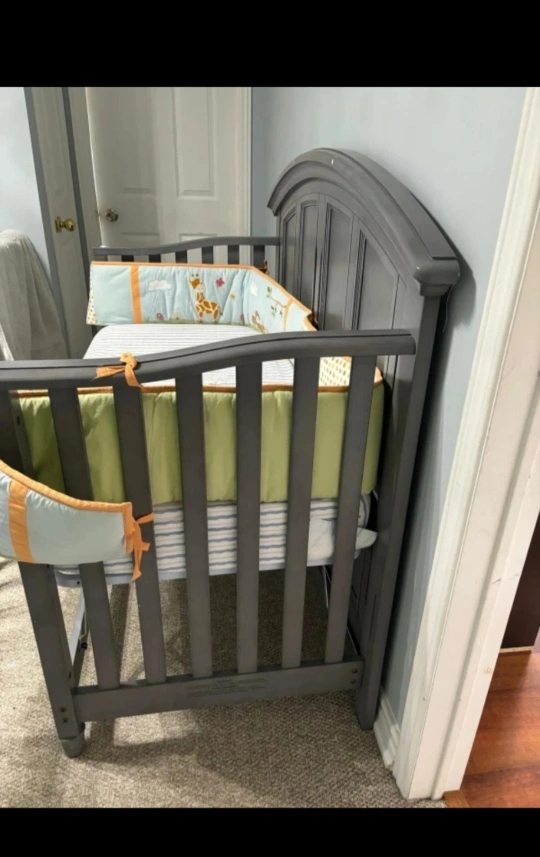 Grey Baby Crib with Free Mattress