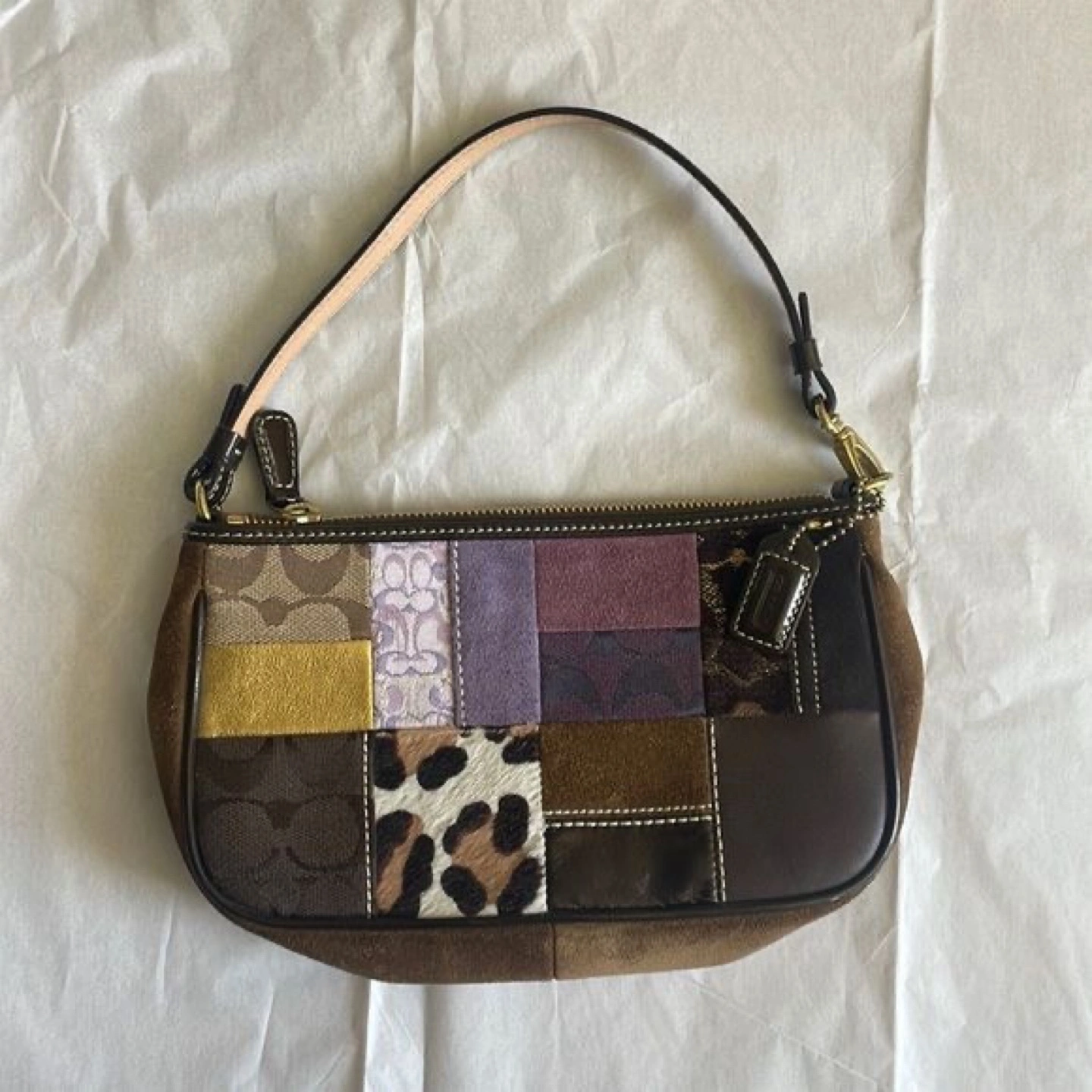 Selling a cute Coach mini baguette bag with a unique patchwork design! Very RARE Y2k style!