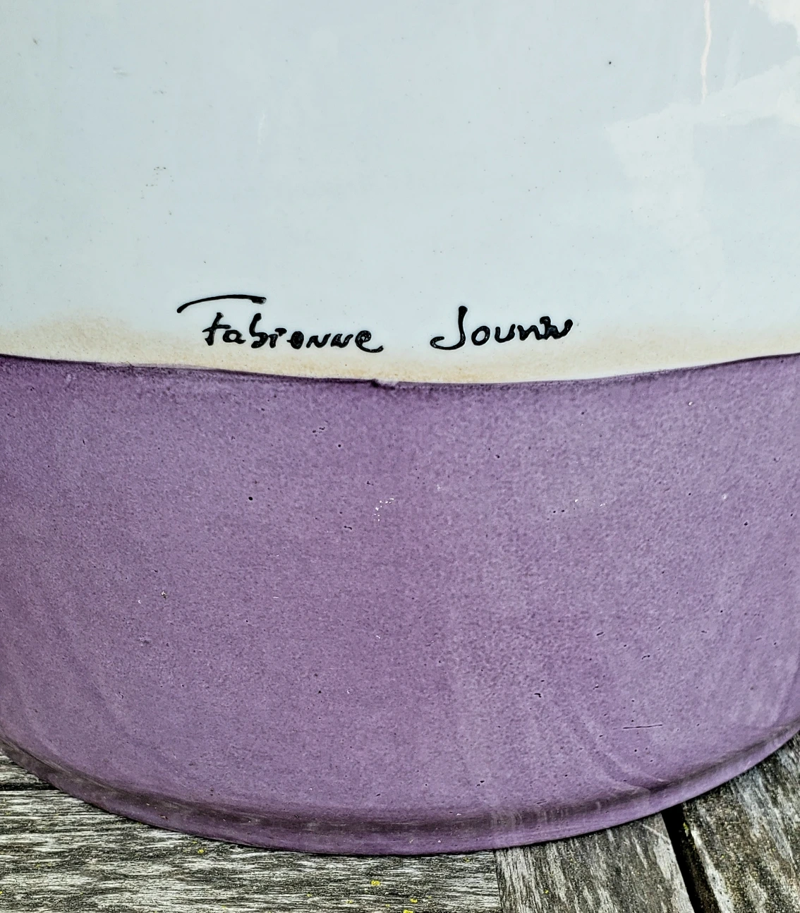 Rare by its large size, white and lilac enamelled porcelain pot. In very good condition with some light scratches on the rim and a few very minor marks on body.