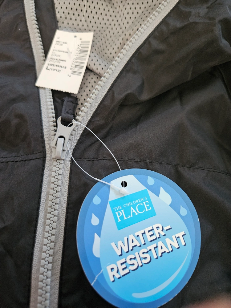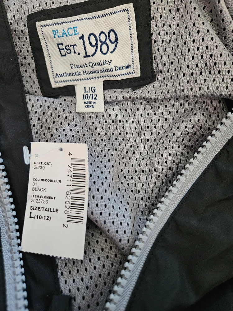 Here's a new jacket from The Children's Place! It's black, water-resistant, and size L (10/12) Ideal for back to school Sfpf Oshawa Harmony Road South at 401