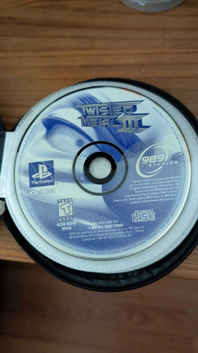 Get ready to ignite your console with Twisted Metal III for the Playstation! This game is in used condition. Relive the thrill of demolition derby mayhem and over-the-top vehicular combat with a wide array of unique characters and their destructive vehicles. Each level is an interactive playground of chaos, where strategy and firepower are your best friends. Platform: PlayStation, Genre: Vehicular Combat, Multiplayer: Up to two players. Cash accepted.