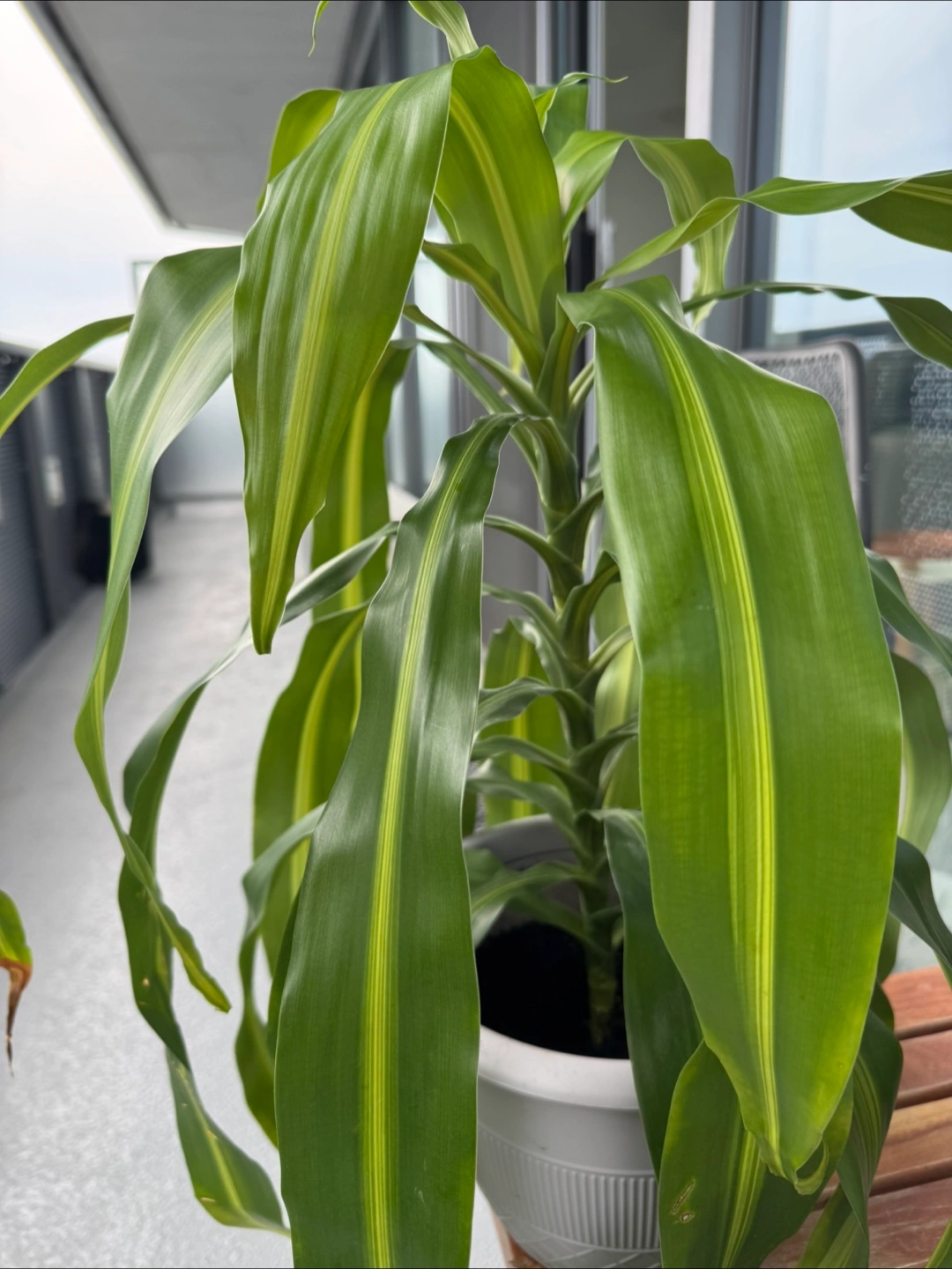 Selling a healthy corn plant in a plastic grey pot! It's a great way to add some greenery to your home. Very easy to take care of it