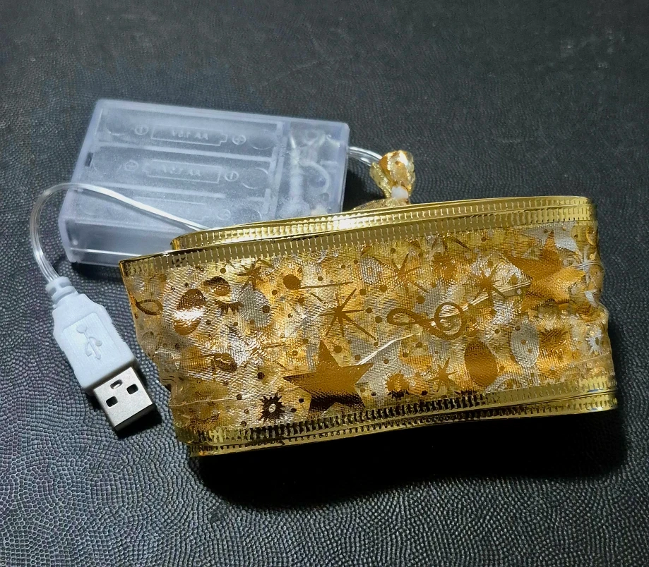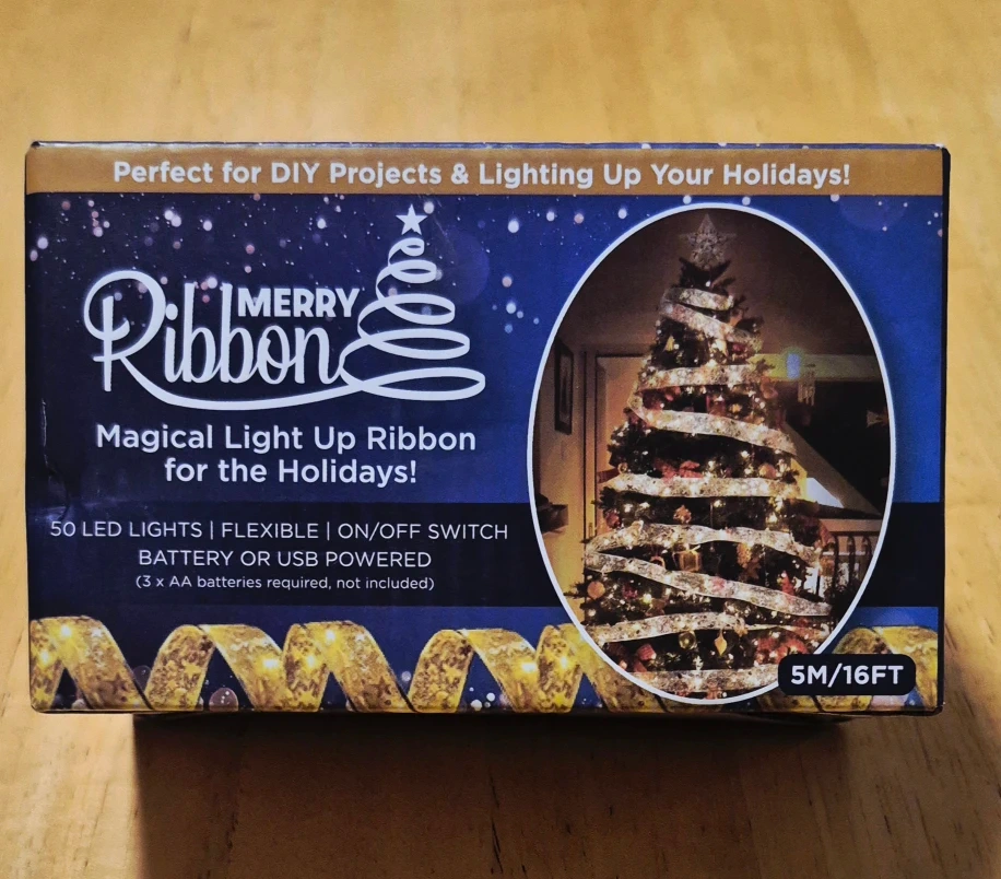 Selling a brand new Merry Ribbon Magical Light Up Ribbon for the holidays! It's perfect for DIY projects and lighting up your holidays. The ribbon has 50 LED lights and is flexible with an on/off switch. It can be powered by battery or USB. Durable and long-lasting!
