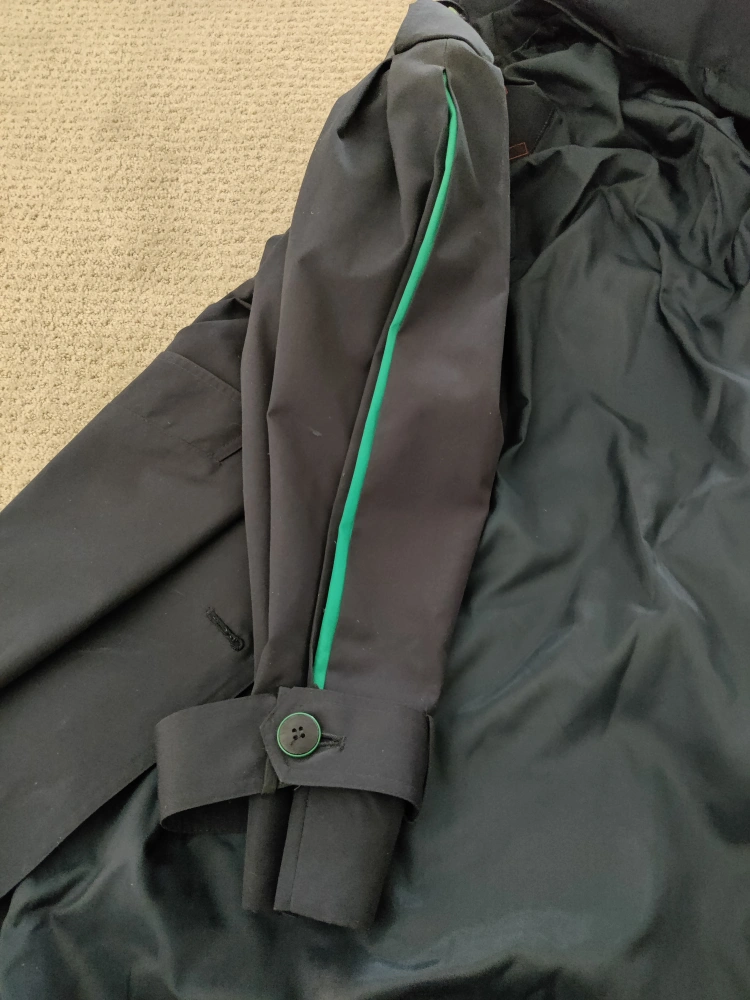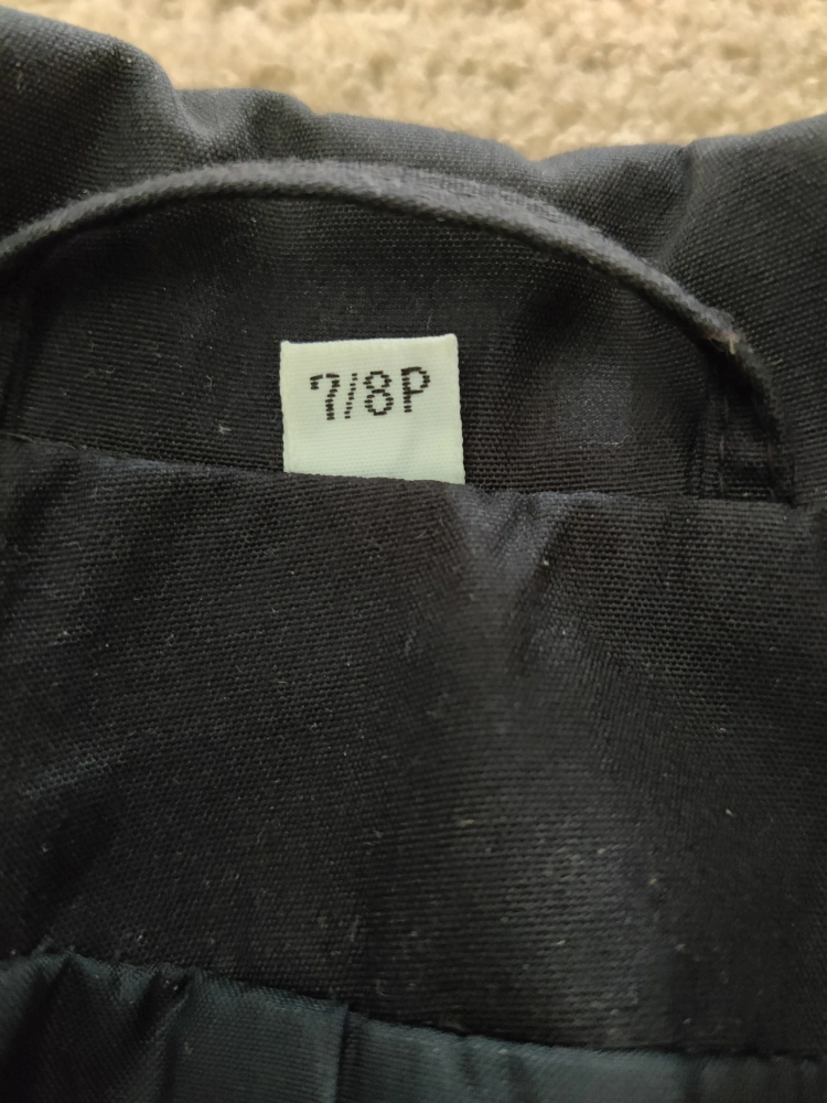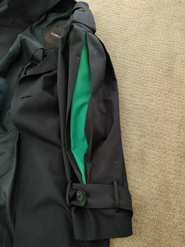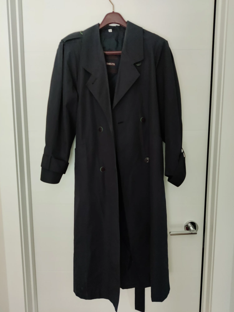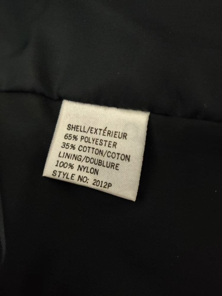 174I am selling a Women Navy Blue Long Coat Summer / Spring / Autumn Jacket in used, excellent condition. No tears or rips. There are green accents along the collar, sleeves, and buttons. Integrated shoulder pads. Brand: Elements Size: 7/8P Dimension: * Length (Collar to Base): 45" * Shoulder: 16" * Shoulder to Cuff: 24" Shell Material: * 65% Polyester * 35% Cotton Lining Material: * 100% Nylon Comes from a pet and smoke-free environment. Pickup in Mount Pleasant (NW Calgary)