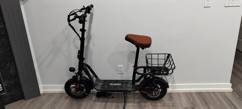 500watt electric scooter that's in great shape! It comes with a comfy seat and a handy basket, perfect for errands top speed 30km/h 40km range