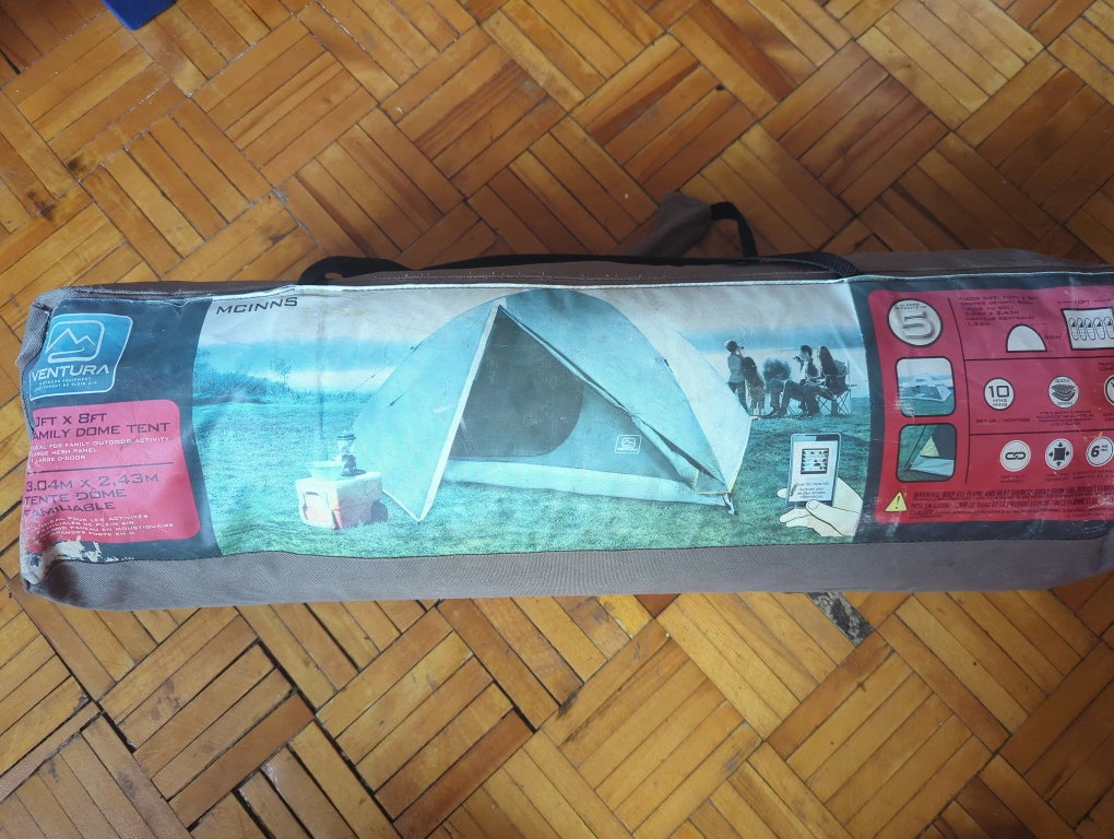 Selling a Ventura Mcinns family dome tent, perfect for your next outdoor adventure! It comfortably sleeps 5 people and fits two queen-sized airbeds. The tent is easy to set up in just 10 minutes. It has a center height of 60 inches, giving you plenty of room to move around inside. The floor size is 10ft x 8ft (3.04m x 2.43m).