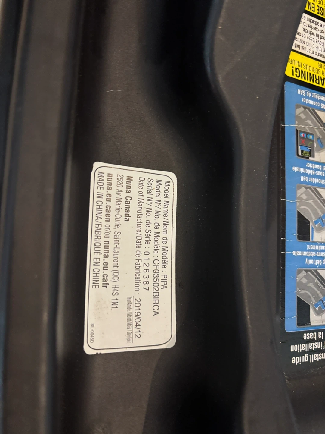 Selling a Nuna Pipa infant car seat! It's in great condition and ready for a new family. Our son outgrew and this is just taking up space at home. The manufacturing date is 2019 April 12.