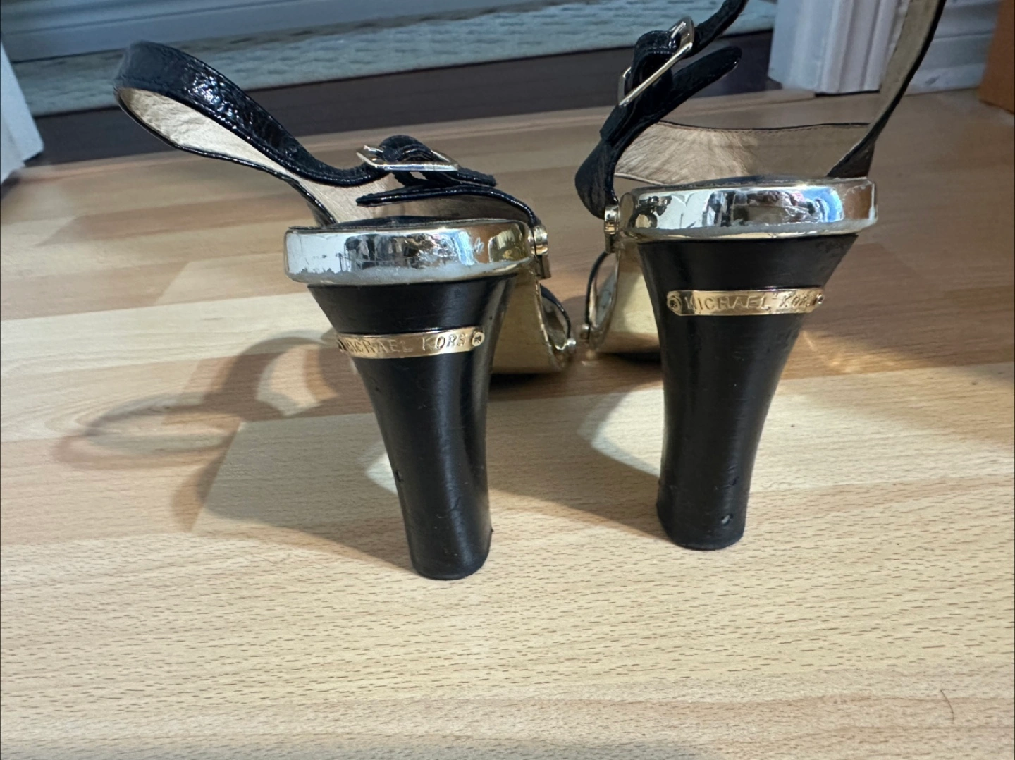 Selling a pair of Michael Kors black heels in size 8. They have a stylish design with a gold accent. Perfect for dressing up any outfit!