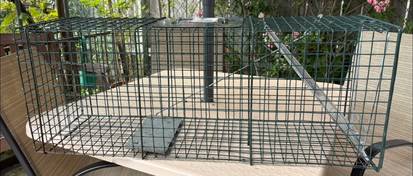 Selling two Large size Easy Set Live Animal Cage Traps. They are each 32” long, 12” in height and 11” in width. They are in good condition and ready to help you safely relocate any unwanted critters from your property. They are made of sturdy wire protected mesh and are easy to use.