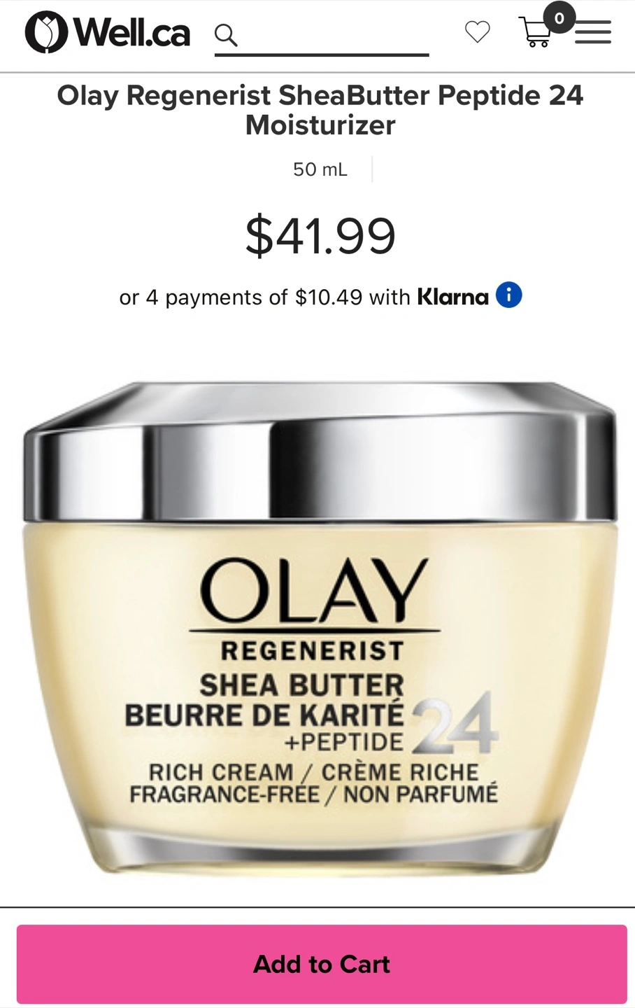 711Brand new, never opened. OLAY Regenerist Moisturizer Shea Butter + Peptide 24 Fragrance Free Recently purchased — but ordered wrong version and unable to return. Paid $41.99 plus tax. Pick up from a smoke free home near Browns Line & Lakeshore Boulevard in Etobicoke (Toronto/Mississauga).