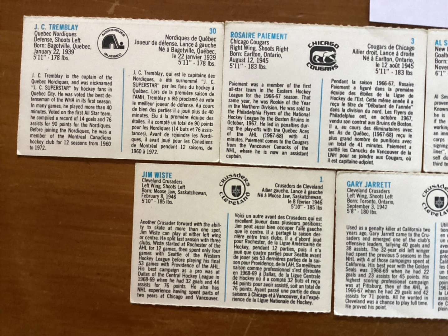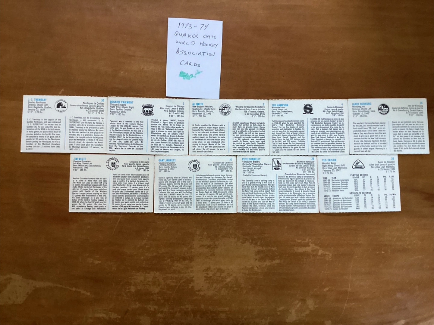 9. 1973/74 QUAKER OATS WHA Trading Cards !