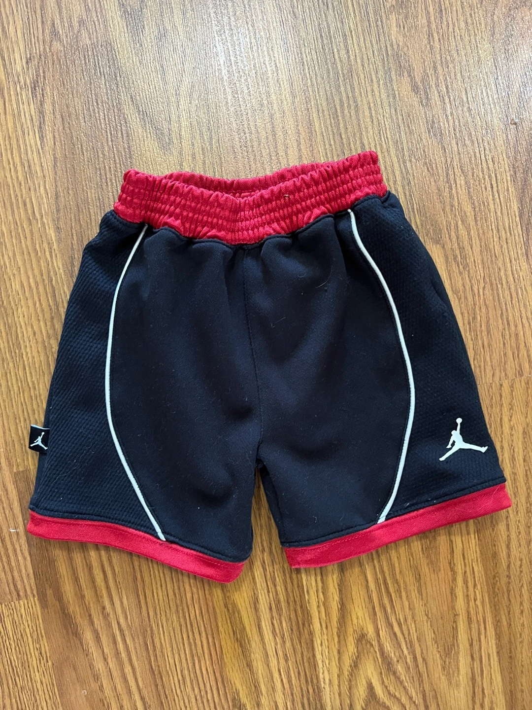 Infant boys Air Jordan shorts, size 12 months. Black with red accents and Jumpman logo. Minor snags on the back. Smoke-free home. Great for active little ones.