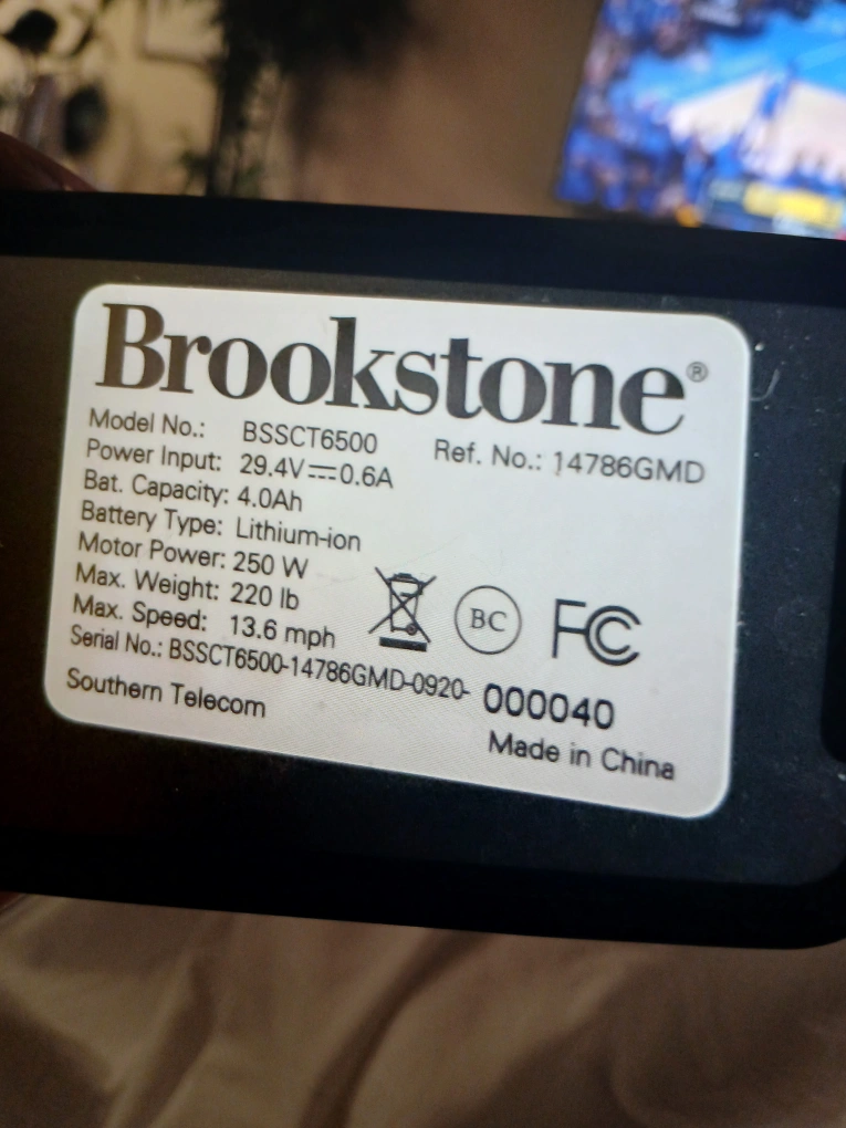 102Selling a Brookstone electric scooter in great shape! It can reach a max speed of 13.6 mph and supports a max weight of 220 lb. The battery capacity is 4.0Ah. Feel free to message with questions!