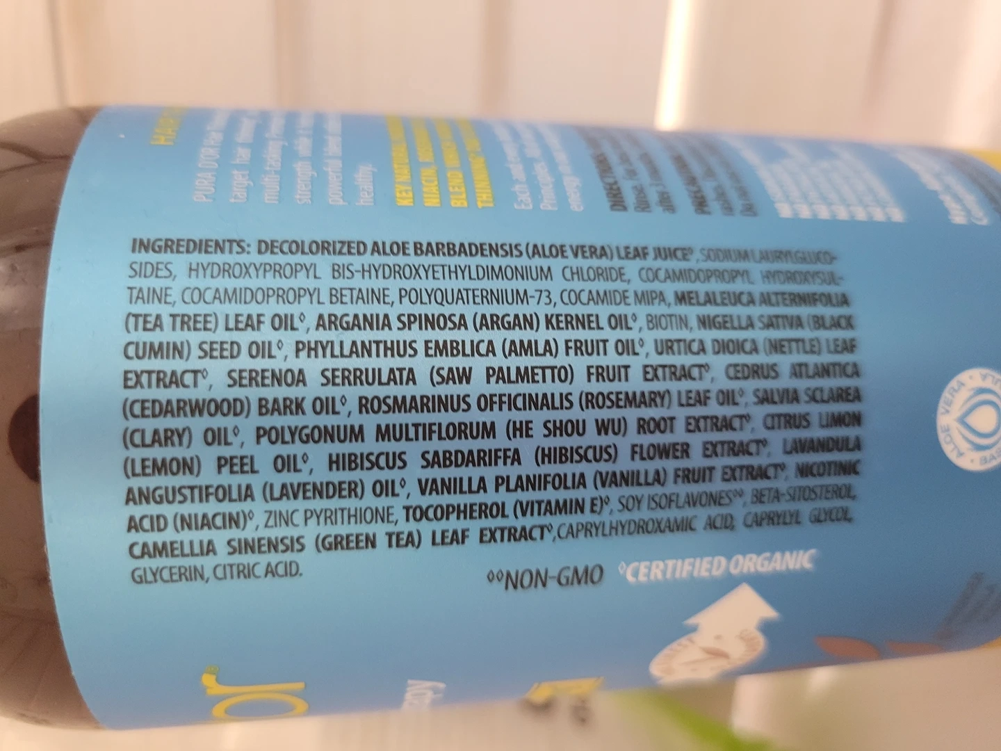 Effective Purador Shampoo to help with hair growth. Color safe! No parabens, all natural ingredients. Over 2/3 of the bottle left. Only downside is the smell. I stopped using after my hair recover from falling due to treatment because I couldn't stand the smell haha. But it really is effective for me.