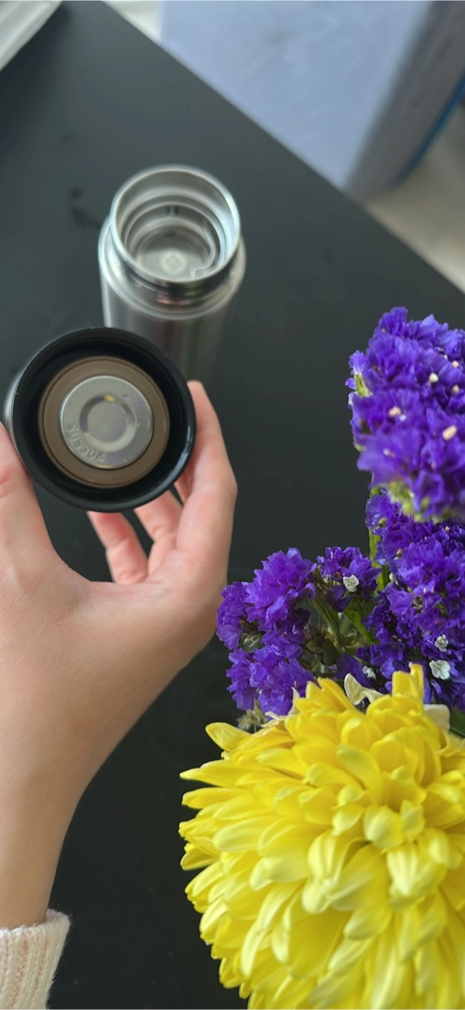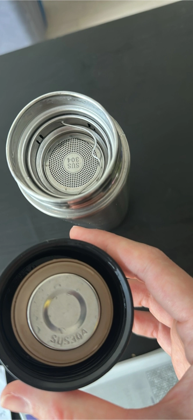 Selling a stainless steel thermal bottle. It's in great condition and perfect for keeping your drinks hot or cold on the go! The bottle has a sleek, modern design and is made of durable stainless steel. It also includes a filter inside.