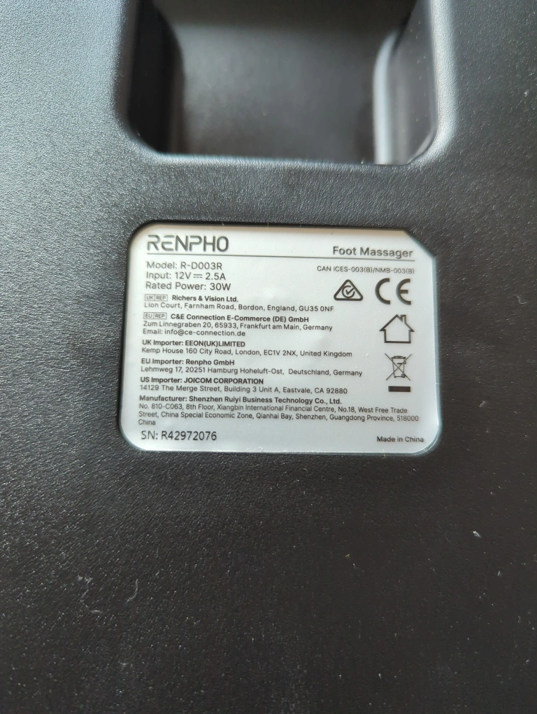 Brand New a RENPHO foot massager, model R-D003R. It features adjustable knead intensity, air intensity, and heat settings. The massager also has a timer function. Comes with a remote control for easy operation