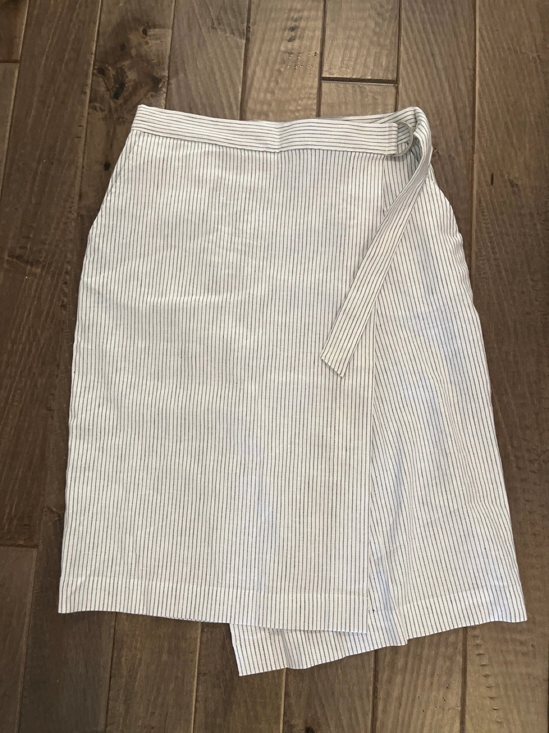 Selling a cute Banana Republic wrap skirt in size 8! It features a stylish striped pattern that's perfect for any occasion. The skirt is brand new!