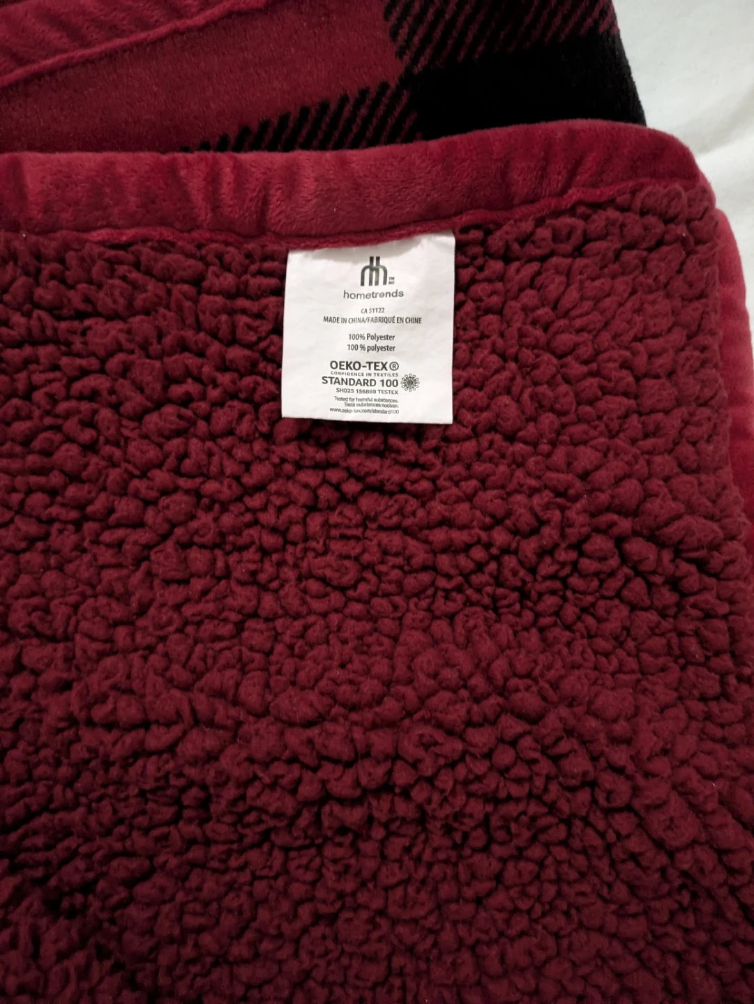 Snuggle up with this cozy Home Trends throw blanket! It features a classic red and black buffalo pattern on one side and a soft sherpa lining on the other. It's made of 100% polyester and is machine washable, making it easy to care for.