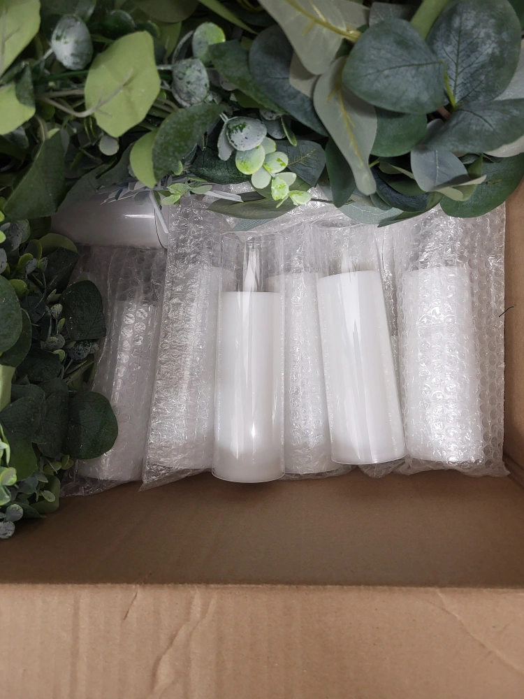 Selling a set of 35 IMAGE flickering flameless candles! These battery-operated candles have an acrylic shell pillar and a 3D wick. They come with a 10-key remote control timer, perfect for weddings, Christmas or home decor. The set includes 35 candles, each D2.3 in x H5.5 / 7.8 in, and the colour is white