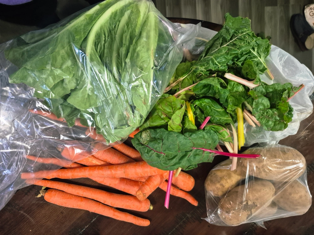 Selling a variety of fresh, locally sourced vegetables! Includes lettuce, Swiss chard, carrots, and potatoes. Perfect for a healthy meal!