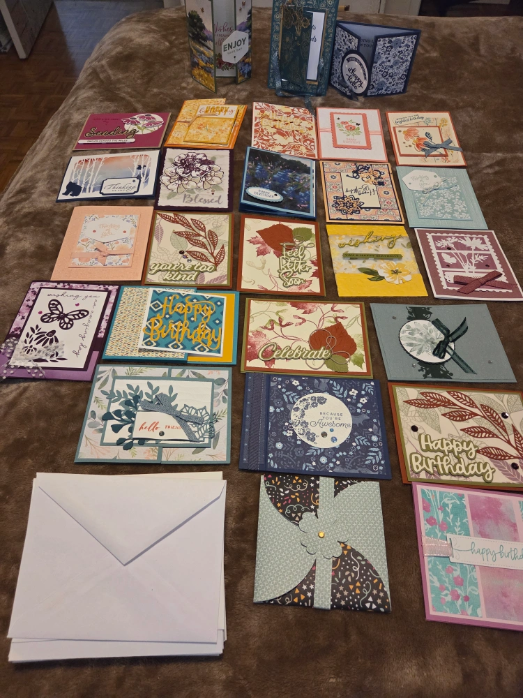 I'm selling a collection of handmade greeting cards, perfect for various occasions! These include cards for birthdays, thank you notes, and general well wishes. Each card ,with envelopes 5$.Features unique designs and thoughtful messages.