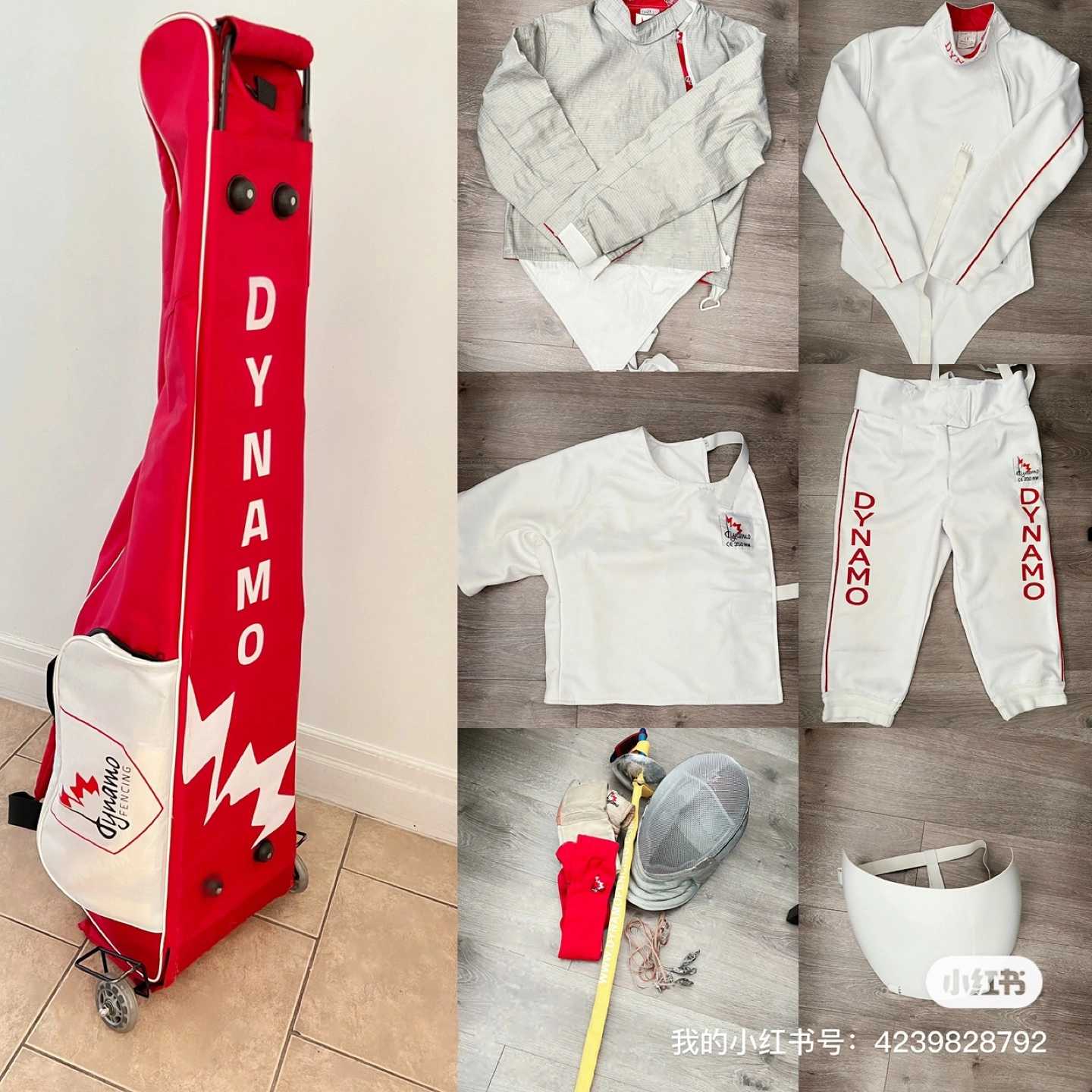 97Selling a complete Dynamo fencing gear set! Includes everything you need to get started: jacket, pants, underarm protector, chest protector, mask, and a carrying bag. All in great condition and ready for your next fencing match!