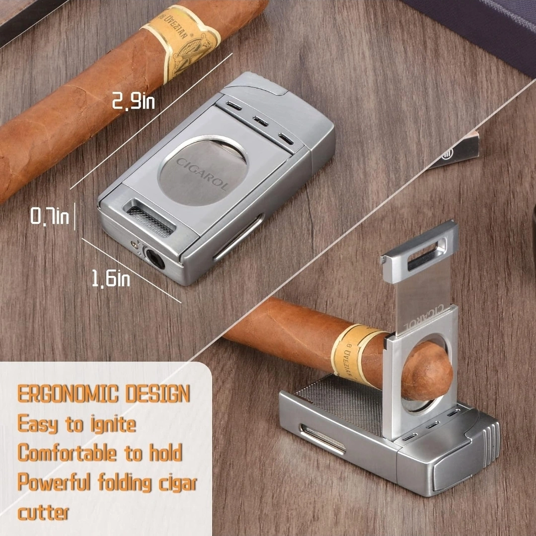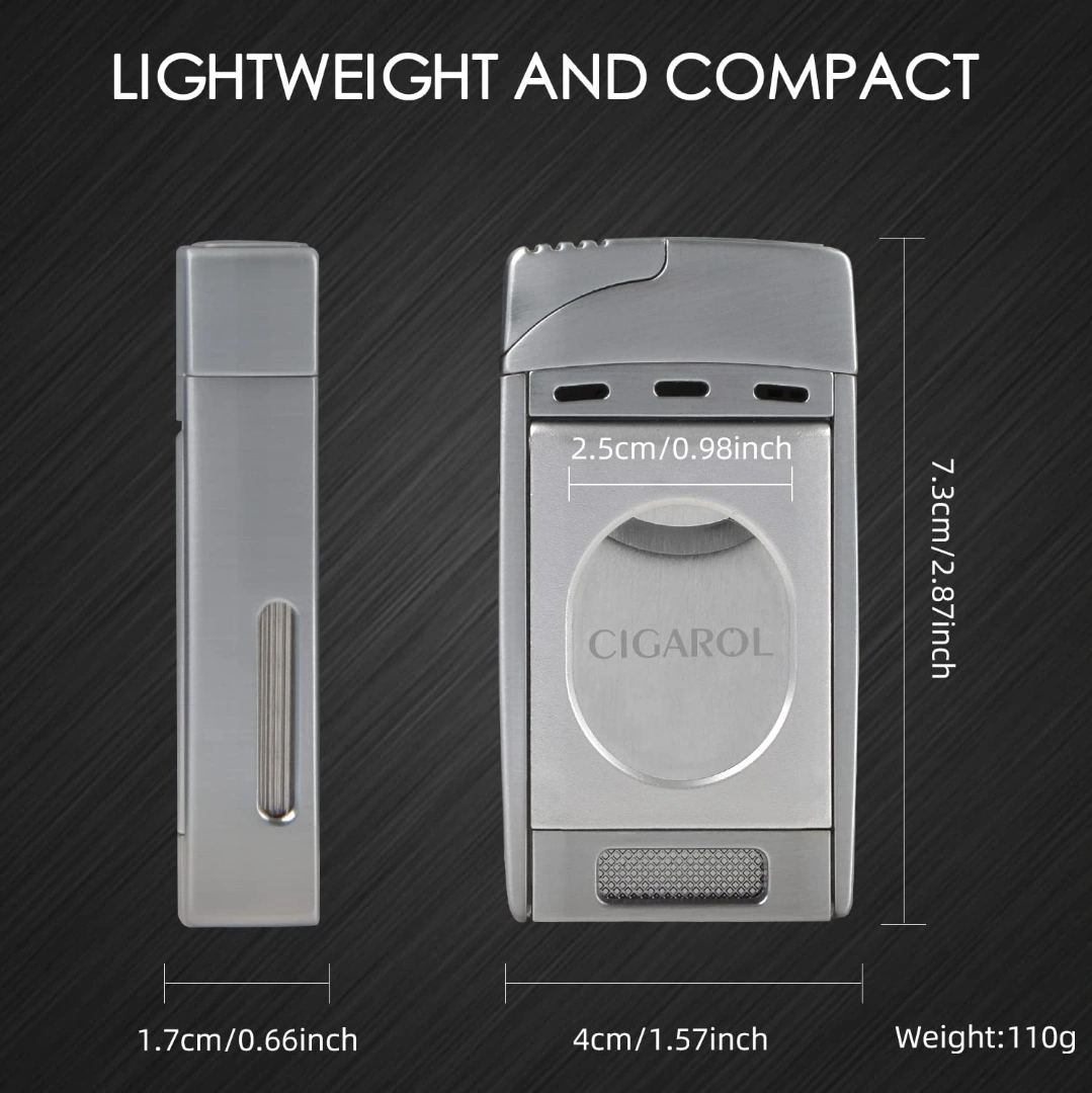 🔥 Elevate your cigar experience with this sleek and stylish Cigarol Jet Flame Cigar Lighter featuring a built-in dual blade guillotine cutter.