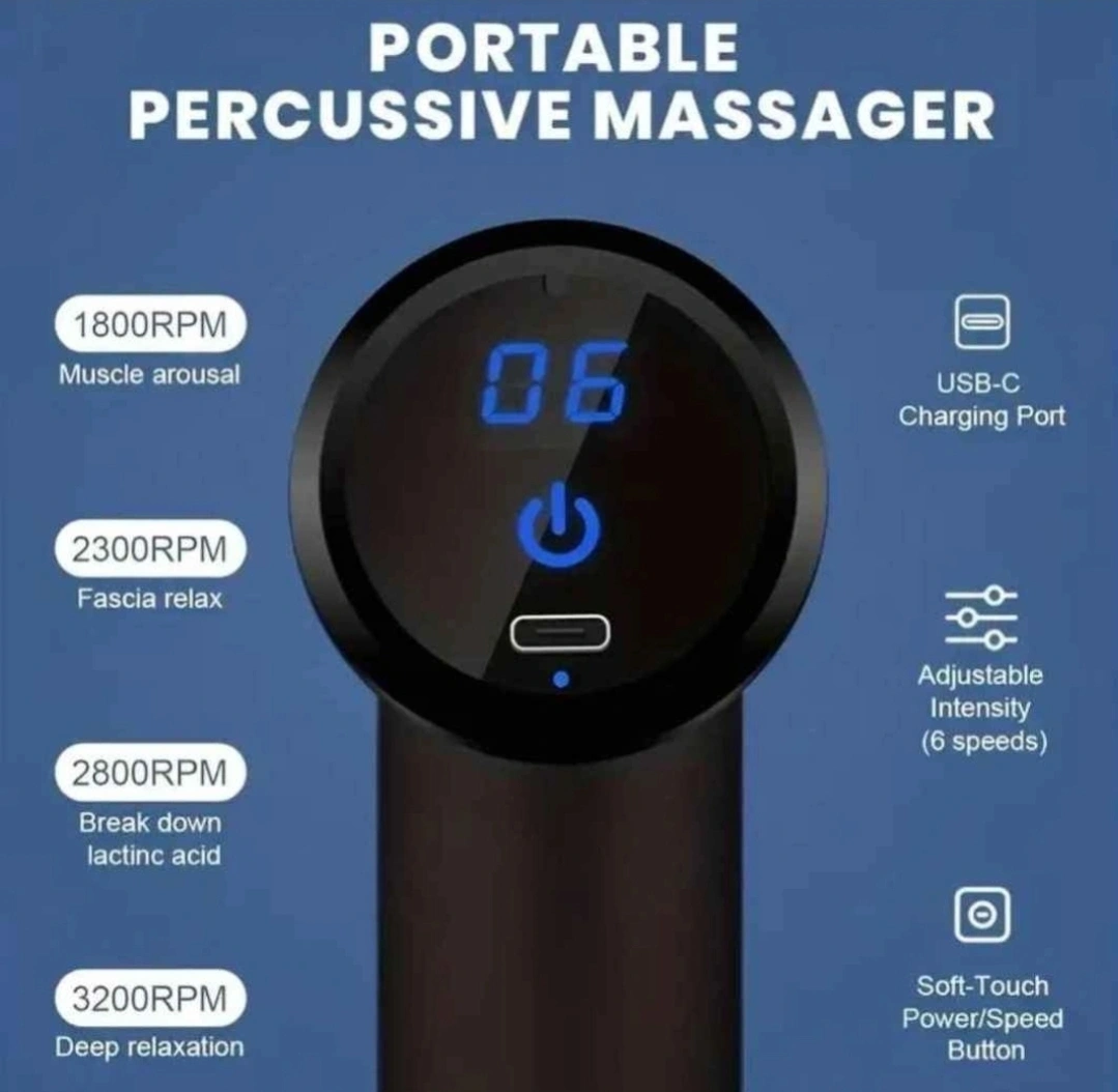 Percusion Massager with 6 Speeds & 4 Different Heads
