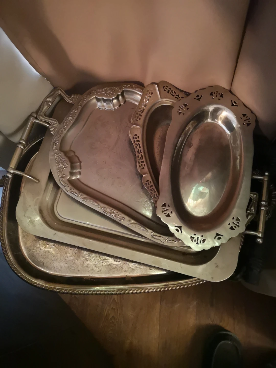 Buy & SellSet of 6 Silver-Plated Serving TraysSet of 6 Silver-Plated Serving Trays$60Three decorative serving trays with ornate handles and edges. Features a vintage, silver-plated finish.ConditionGoodWHERE TO MEETTim HortonsView MapSELLERverifiedJayMission761 review0 chats·0 favorites·7 viewsSEND CHAT TO SELLERHi Jay! I’m interested in your listing.Hi Jay! I’m interested in your listing.Get the Karrot app to chatSign In to chat