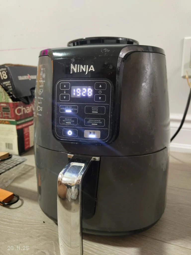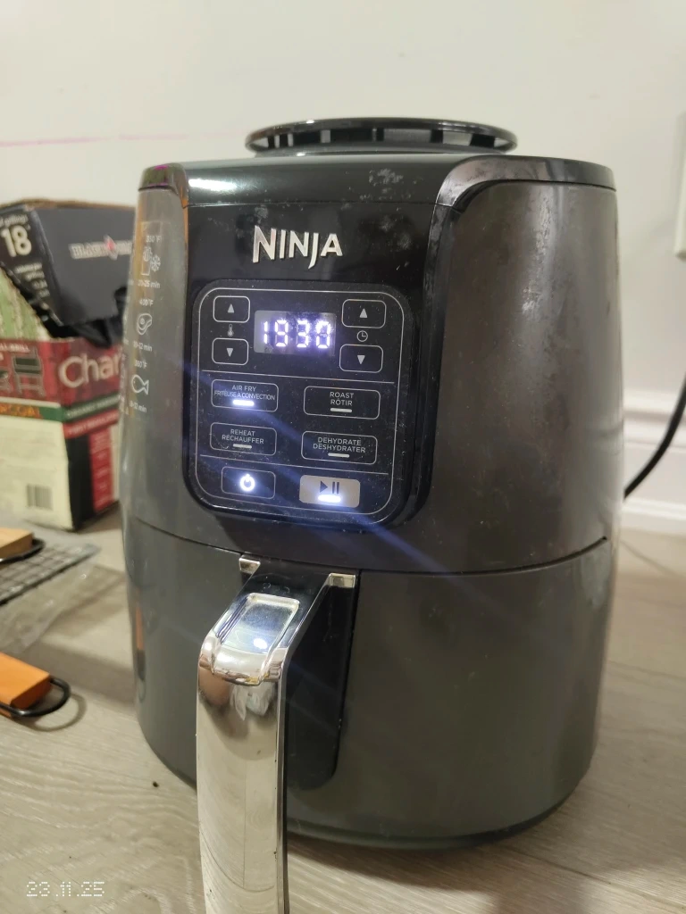 Selling a used Ninja Air Fryer. It's in good working condition and ready for a new kitchen. Perfect for making crispy fries, chicken wings, and more!