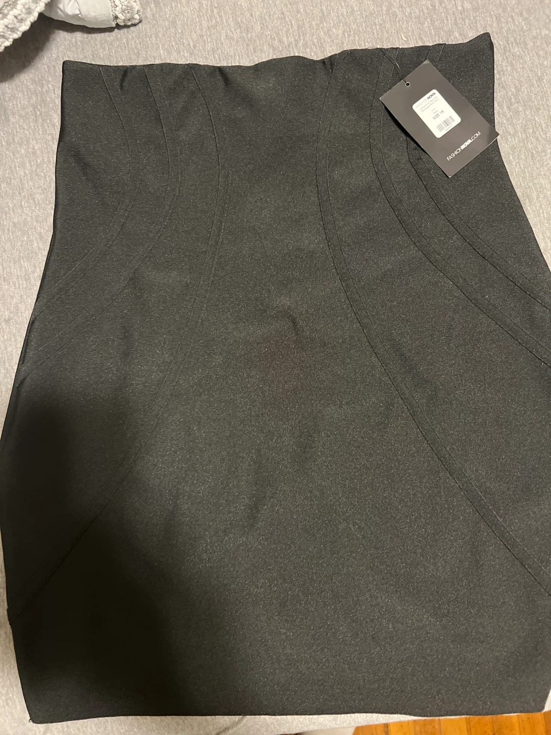 This is a Fashion Nova black mini dress. It's a size 1X The fabric is stretchy and it has paneling details. Bandage midi skirt. Works great with a blazer 👥 Office type skirt. you can dress up or dress down.