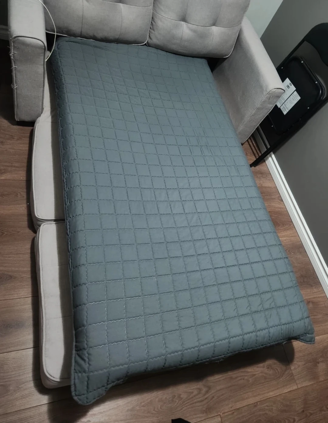 It was used for only about 6 months with a full cover and a quilted topper, so it’s in almost new condition with no stains or damage at all.