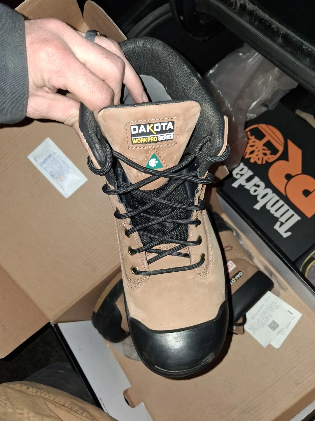 Dakota Workpro Series steel toe boots. Tan suede and black composite toe. Includes original box. Great for job sites!