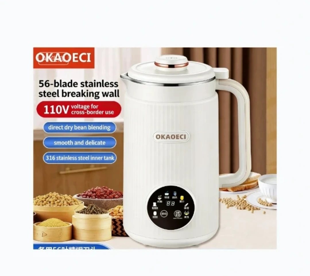 This automatic soy milk maker can prepare fresh drinks quickly. It offers multiple functions including corn juice, nut milk, baby food, boiling, keeping warm, and cleaning. It can also be used as a kettle.