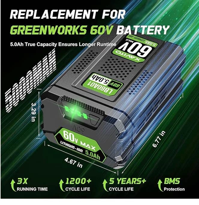 XAVITO Greenworks 60V 5.0Ah Battery Replacement