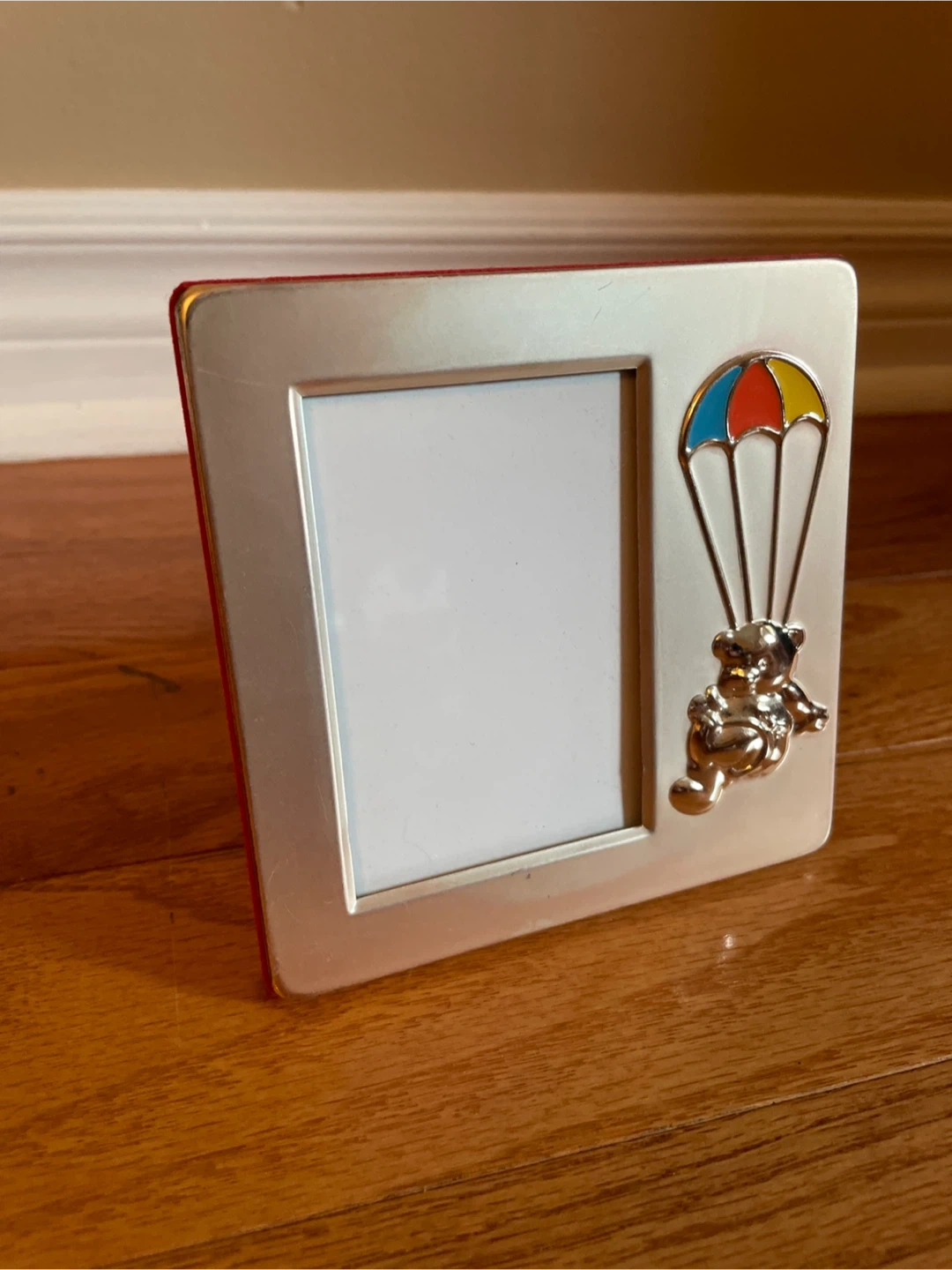A charming picture frame featuring a teddy bear with a parachute design. It's perfect for displaying your favourite photos and adding a touch of whimsy to any room