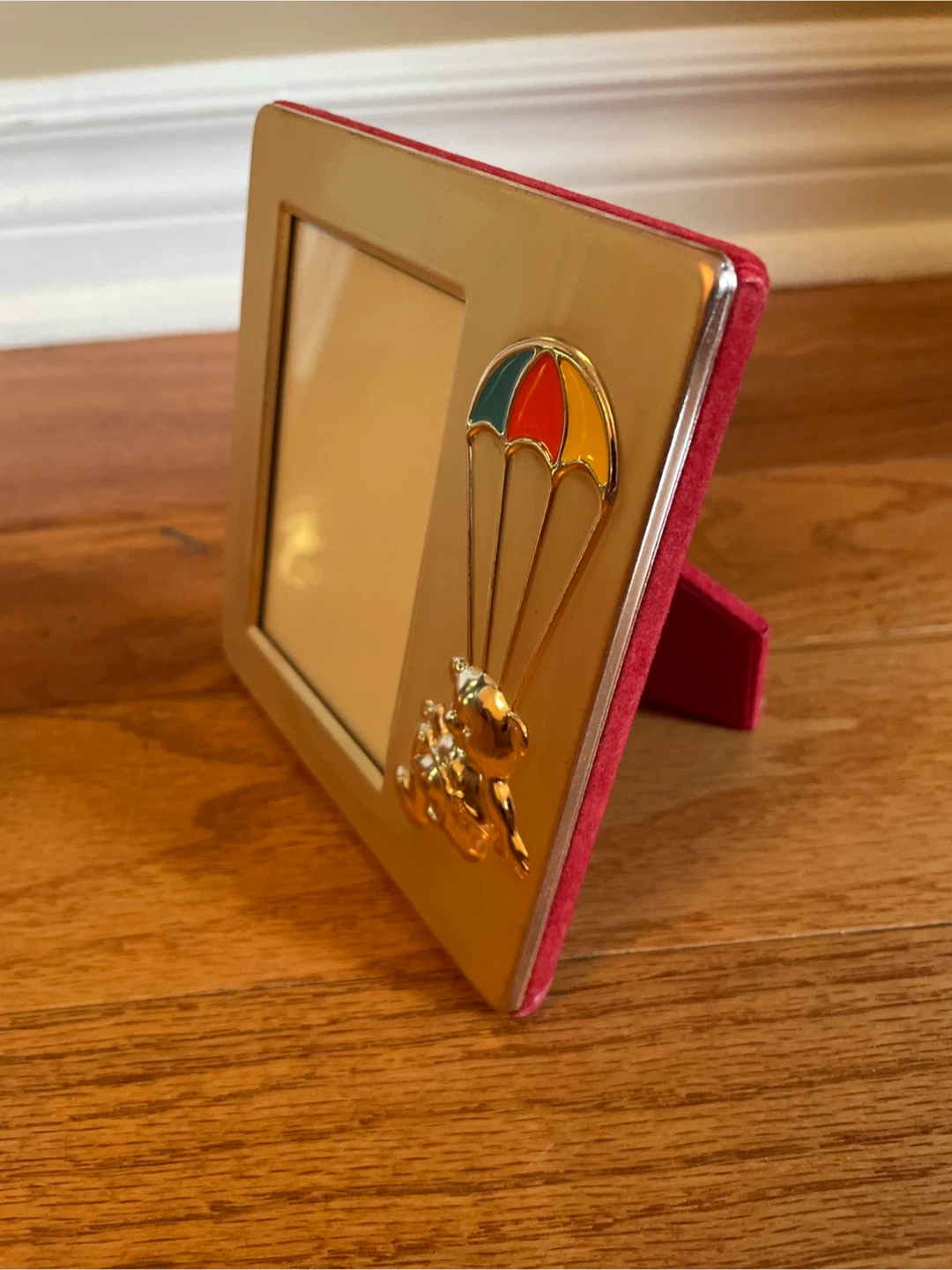 A charming picture frame featuring a teddy bear with a parachute design. It's perfect for displaying your favourite photos and adding a touch of whimsy to any room